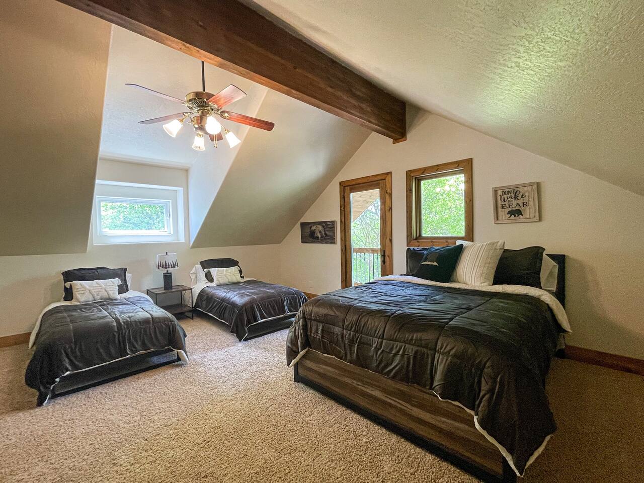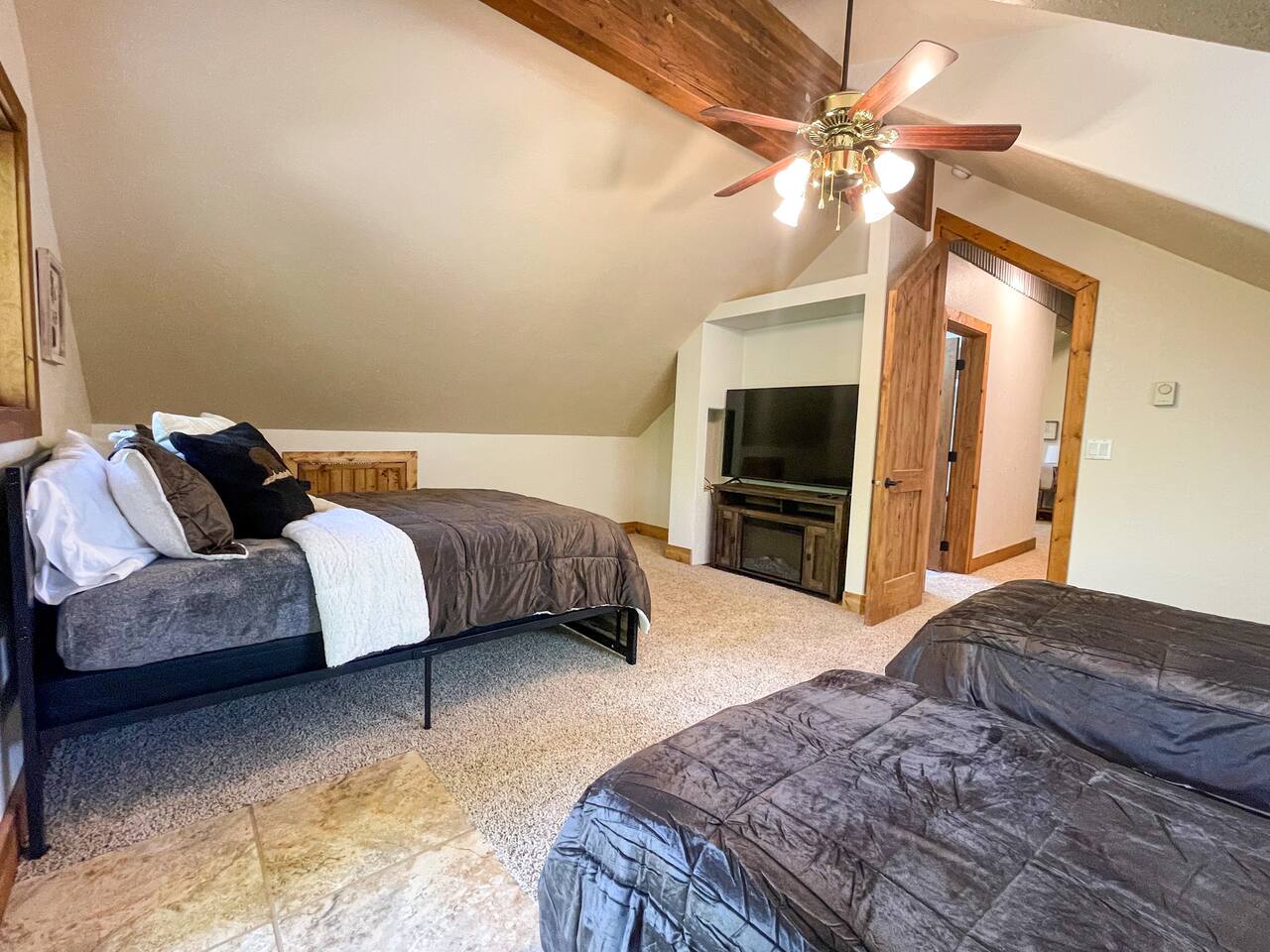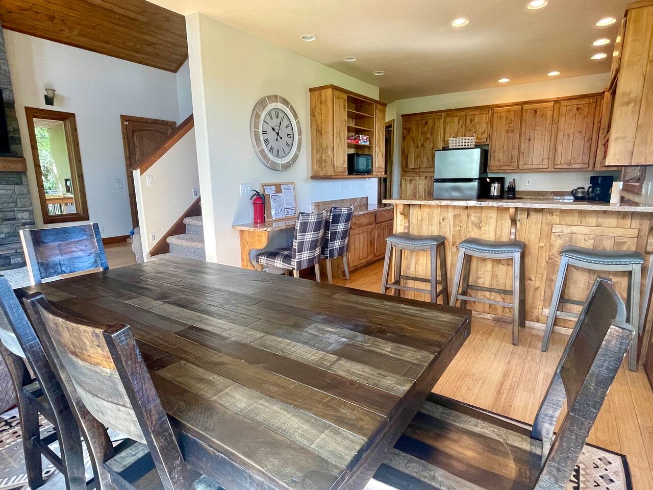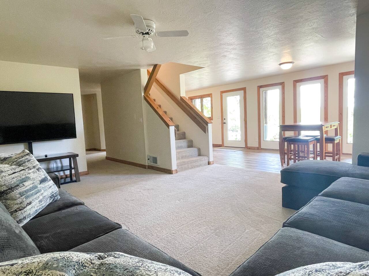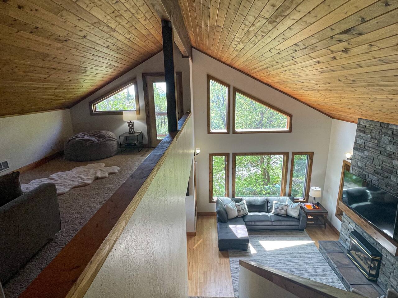 Layout: Main Level - Kitchen Dining Area Living Room with TV and fireplace Laundry Room Half Bath Primary Bedroom with King Bed - Patio access Full Bathroom with jetted tub/shower Upstairs- Bedroom with Queen Bed - Patio access Bedroom with Queen Bed & 2 Twin Beds - TV - Fireplace - Patio access Open loft area with sofa sleeper Second open loft area Downstairs- Living room with TV and large sectional Bedroom with Queen bed Bathroom with shower Second kitchen Walk out style basement to bottom patio ⭐️1 hour to West Yellowstone ⭐️ 1 hr 45 mins to Grand Teton