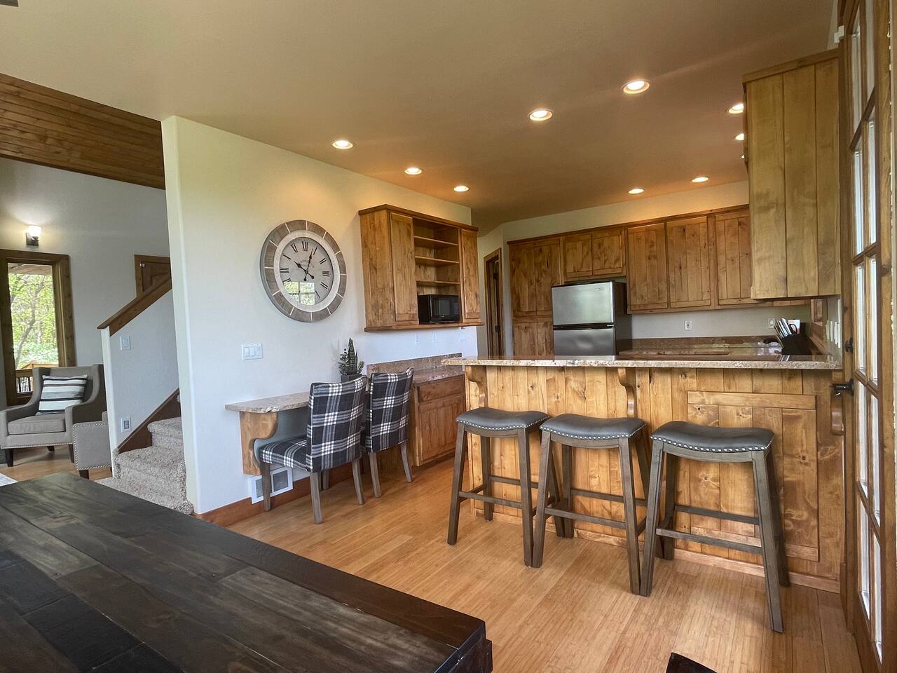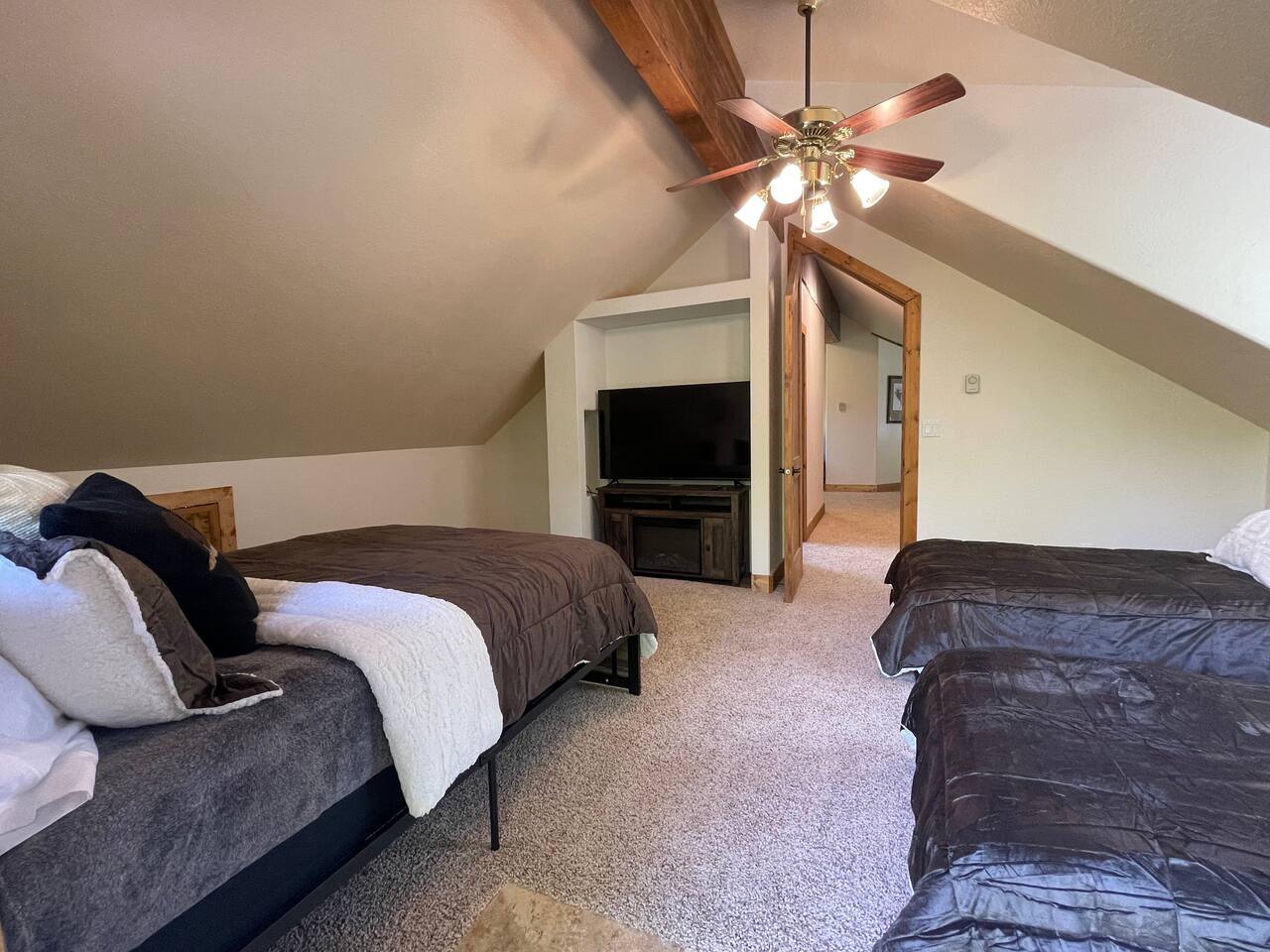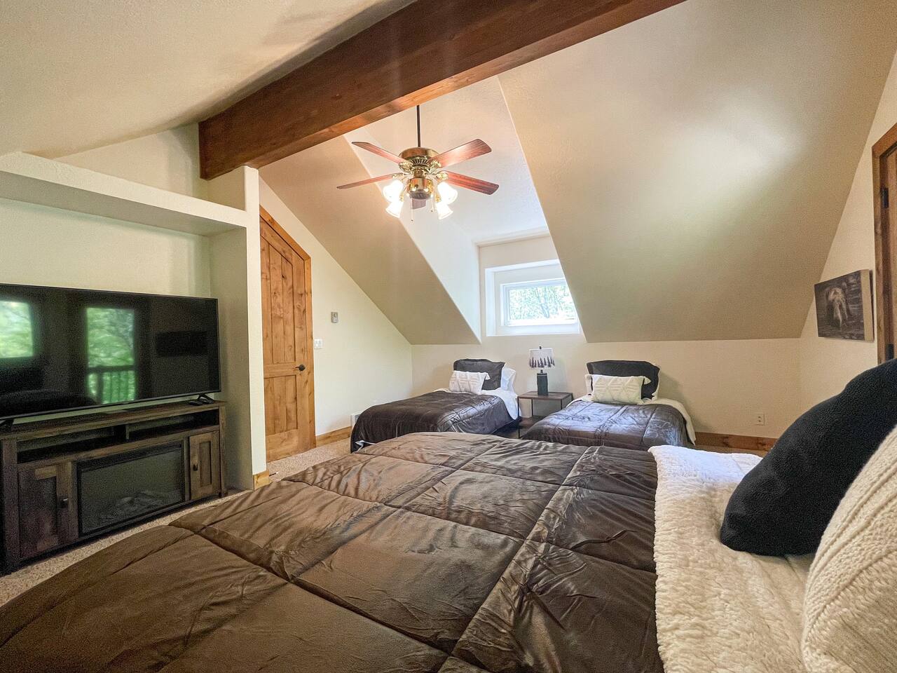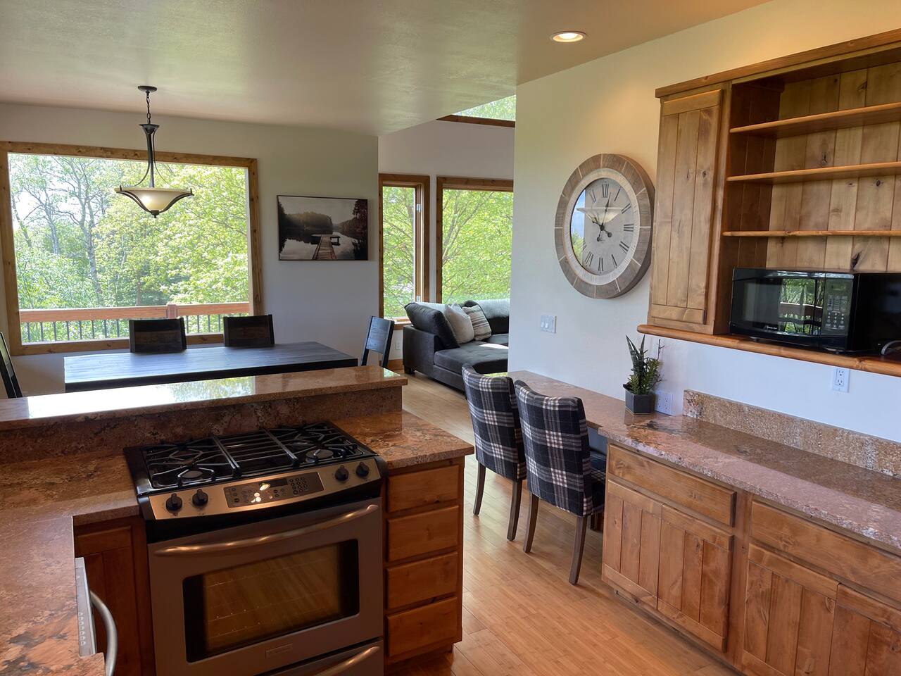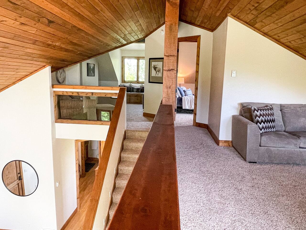 Layout: Main Level - Kitchen Dining Area Living Room with TV and fireplace Laundry Room Half Bath Primary Bedroom with King Bed - Patio access Full Bathroom with jetted tub/shower Upstairs- Bedroom with Queen Bed - Patio access Bedroom with Queen Bed & 2 Twin Beds - TV - Fireplace - Patio access Open loft area with sofa sleeper Second open loft area Downstairs- Living room with TV and large sectional Bedroom with Queen bed Bathroom with shower Second kitchen Walk out style basement to bottom patio ⭐️1 hour to West Yellowstone ⭐️ 1 hr 45 mins to Grand Teton