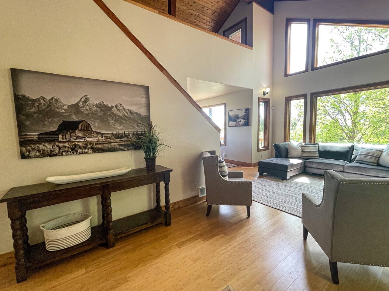 Welcome to Aspen View Retreat, a freshly renovated hideaway that feels like the trees parted perfectly just for the view of the Tetons! With breathtaking sights all the way around this secluded property, you'll experience a location that you never even knew existed! Perched just over the Henry's Fork of the Snake River and in a perfect location to explore West Yellowstone and the Grand Teton National Park, it is an ideal "home base" to come back and relax at with your family and friends!