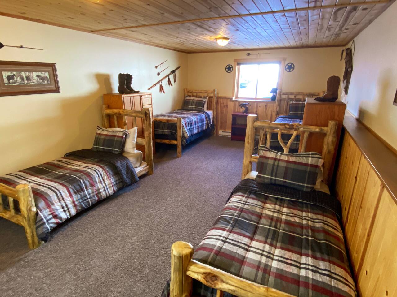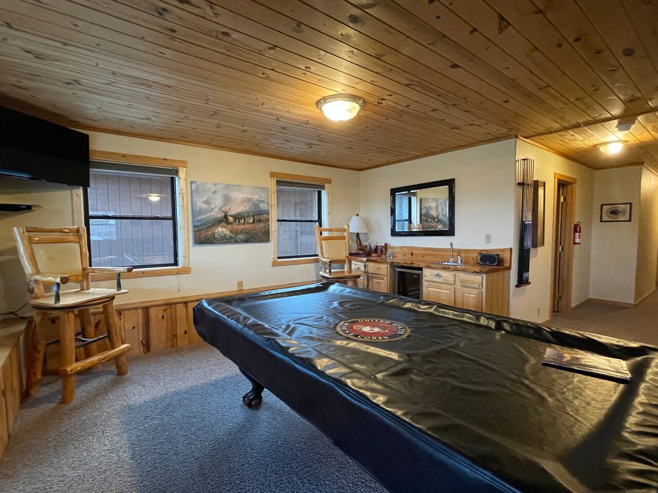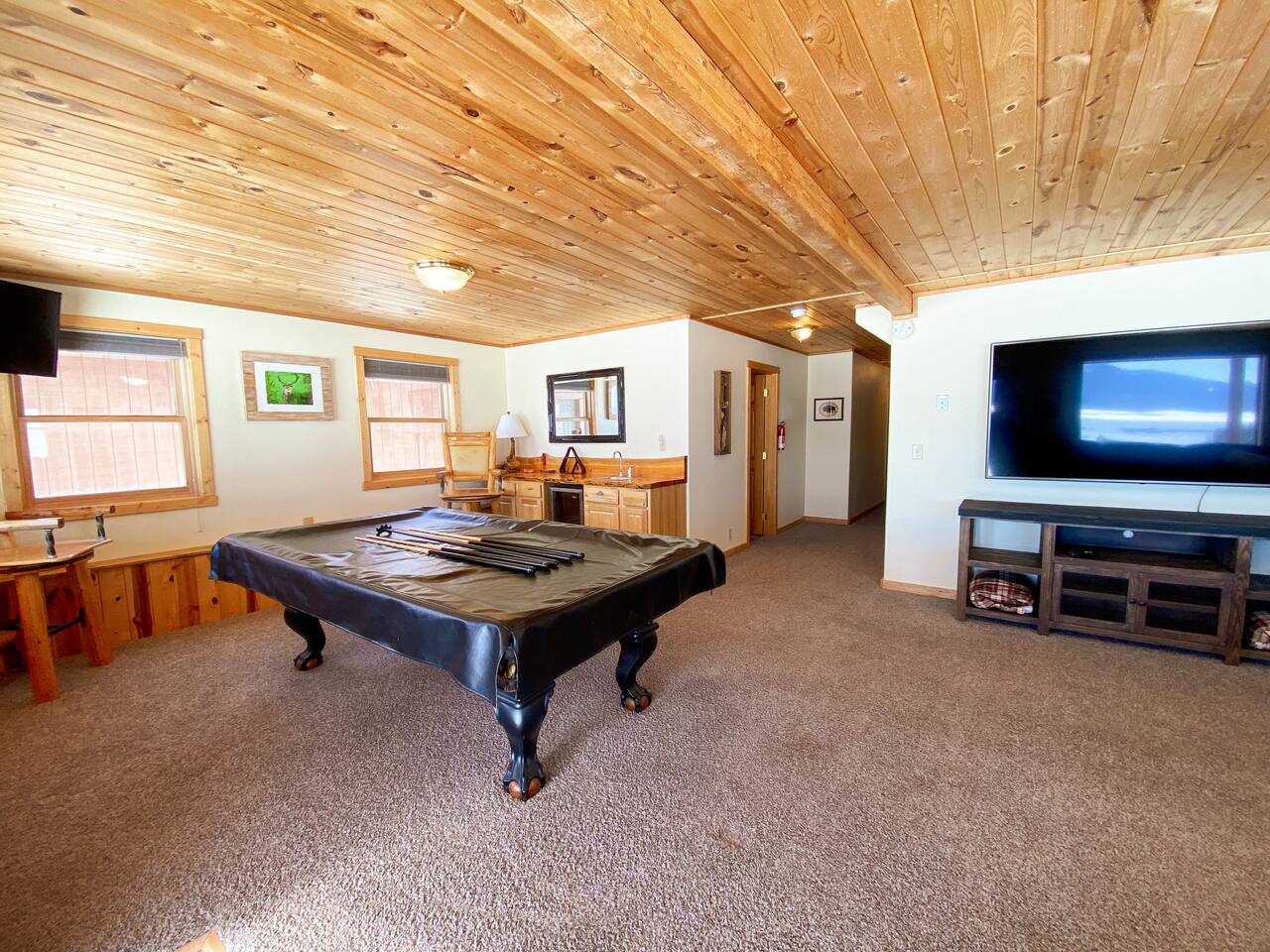 Our clean and well maintained cabin is approximately 2950sq ft. with a walk out basement and main floor balcony that overlooks Henry's Lake. With 6 private bedrooms and 3 bathrooms, everyone in your group will have a comfy room to retire to, but will also have plenty of room to mingle together in the 2 large common areas - both with large screen TVs. The layout is as follows: Main floor Master Bedroom - King bed with attached bathroom with tub/shower Bedroom 2 - Queen bed Bedroom 3 - Queen bed Bathroom - tub/shower Spacious Kitchen with bar top seating Dining Area with large table to gather Family Room with sofa, loveseat and comfy reading chair Mud room with plenty of hooks for jackets etc. Downstairs: (Walk out basement) Bedroom 4 - Queen bed Bedroom 5 - Queen bed Bedroom 6 - 4 single beds Bathroom - Tub/shower Laundry Room - Washer/Dryer, sink and 2nd refrigerator Game area with pool table and wet bar Living Room with large sectional couch and 75" SmartTV This gorgeous area is a huge outdoor playground! Aside from the fishing, snowmobiling, boating, ATV-riding, hiking, horseback riding, rodeos, cross country skiing, bird watching, hunting and touring; Island Park's scenic and historical sites are some of the other popular activities. There are Outfitters for nearly every activity along with plenty of maps and guide books for the visitor who wants to experience Island Park on their own. Nearby Yellowstone Park is one of the main draws of the area where you could spend a wonderful day or even multiple days exploring! Henry's Lake is world famous for its fishing and it's not uncommon to catch 7 pound trout out of this lake. It also boasts its own fish hatchery quite near the cabin that help produce and replenish the fish habitat. Elk Lake Lodge is your ultimate destination for year round recreation and fun for your Island Park/Yellowstone adventure getaway! *WiFi speed is 17.9 Mbps download *Trash service provided *Please bring your own firewood