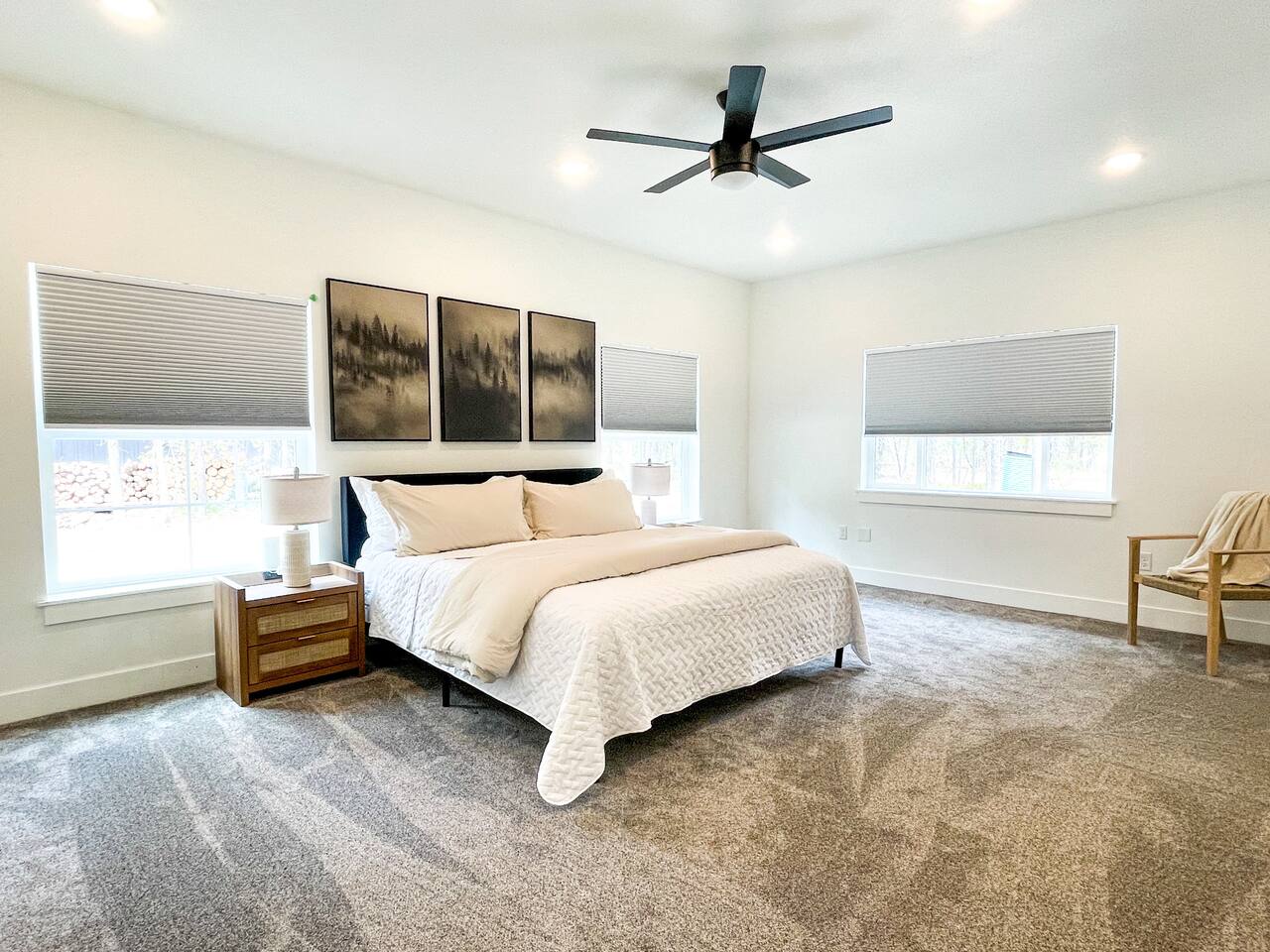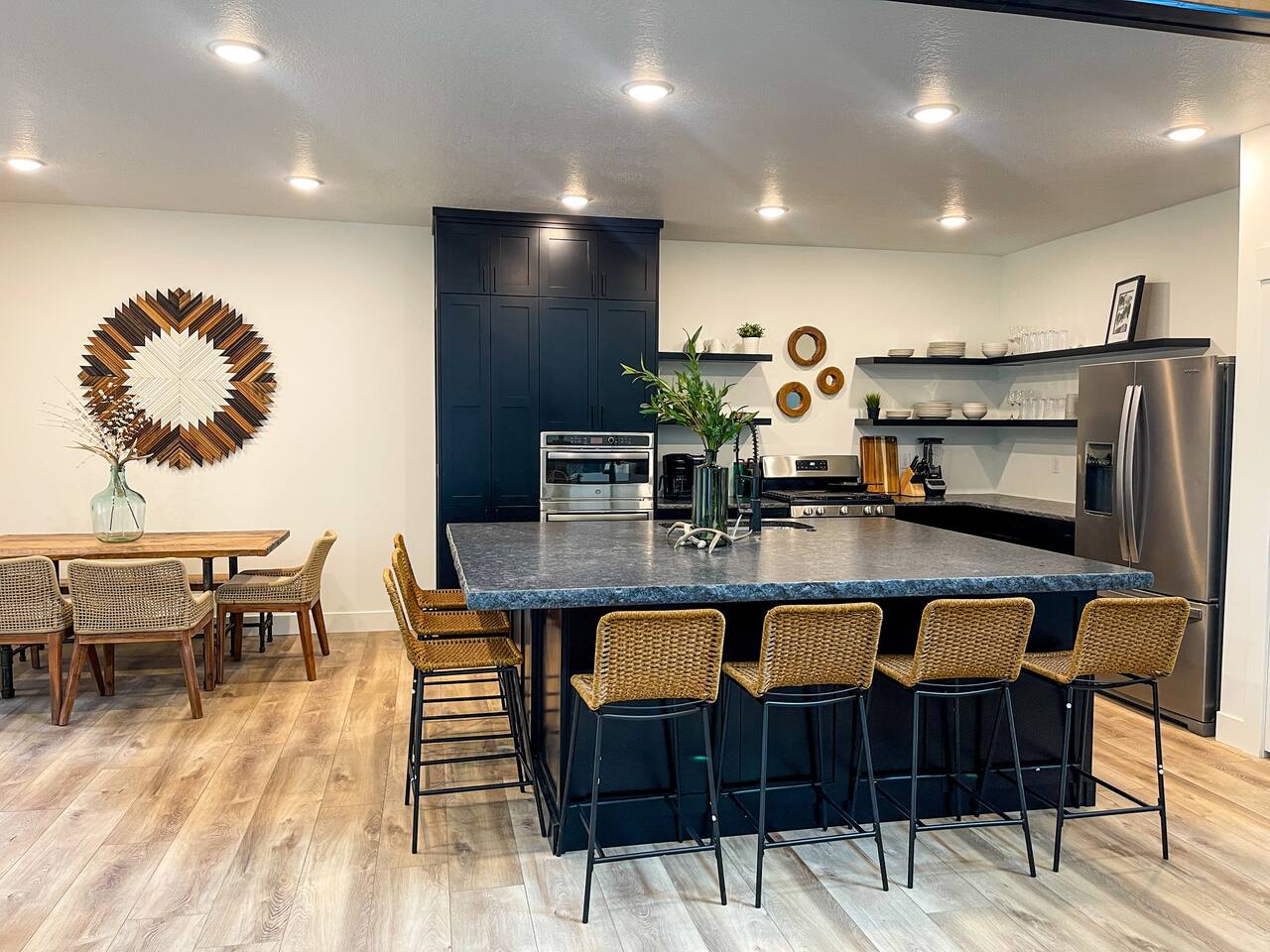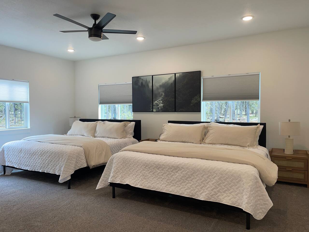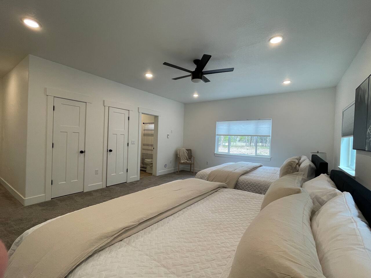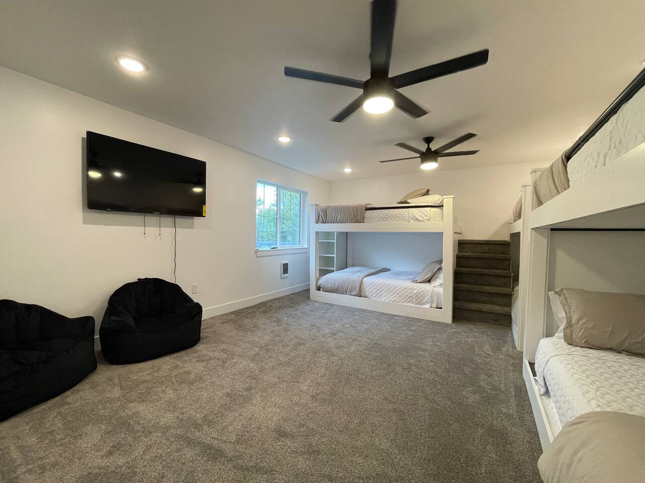 The community borders the Island Park Reservoir so bring your water sports equipment or boat to spend some time on the lake during our breathtakingly beautiful summer days. If you’re an avid snowmobiler, you’ll know what a slice of heaven this area is when it comes to riding. With over 950 miles of groomed trails, Island Park is touted for its expansive trail system. If exploring is more your style, we are located just 40 mins (32 miles) from West Yellowstone and just over 2 hours (108 miles) to Grand Teton National Park. We’re also in close proximity to Big Springs, Macks Inn, Harriman State Park, Mesa Falls, Henry’s Lake, and worldclass fishing. It's the perfect home base for outdoorsmen/women during any season! Enjoy miles upon miles of ATV, hiking, biking, and snowmobile trails right from the house! Home Layout: Main Floor - Bedroom 1; King bed, attached bathroom Bedroom 2; 2 King beds, attached bathroom Bedroom 3; King bed, attached bathroom Kitchen Living room area Dining area Half bath 2nd Living room / game area Laundry Room Upstairs - Bedroom 6; 6 queen beds (queen over queen bunks), attached bathroom All bedrooms have generous closets. All bathrooms are stocked with shampoo, conditioner, body wash, hand soap, bath towels, hand towels, wash clothes. makeup cloths and a blow dryer. We supply toilet paper, paper towels, dishwashing detergent, laundry detergent, dryer sheets & trash bags. The kitchen is stocked with everything you need to make a home cooked meal including a blender, crockpot, hand mixer, griddle, air fryer, toaster, waffle maker, as well as pots, pans and cast-iron skillet. The outdoor covered patio has a large Blackstone grill and seating to enjoy a meal outside. Heated floors throughout the entire home. All you need to bring is your personal items and groceries!