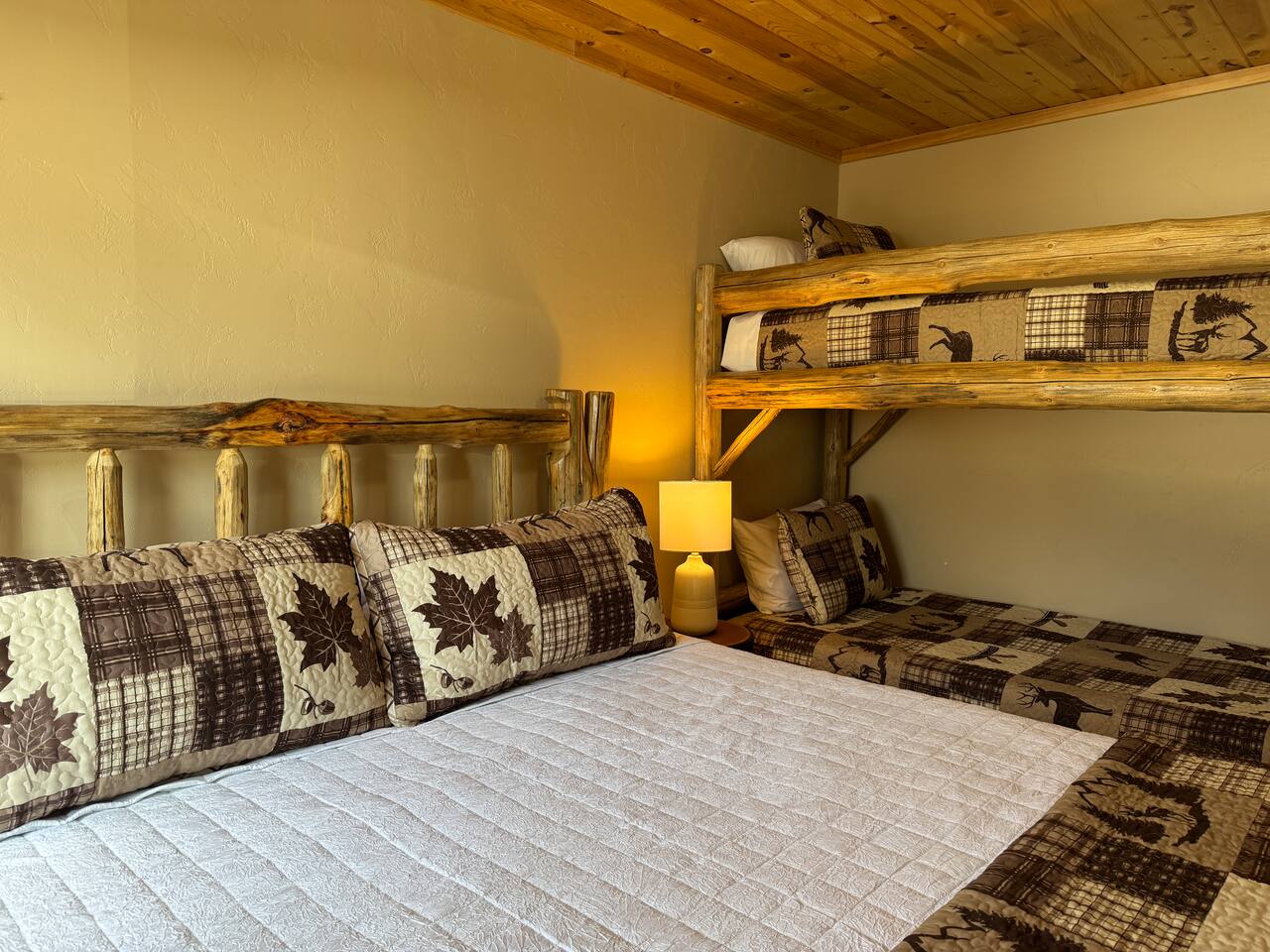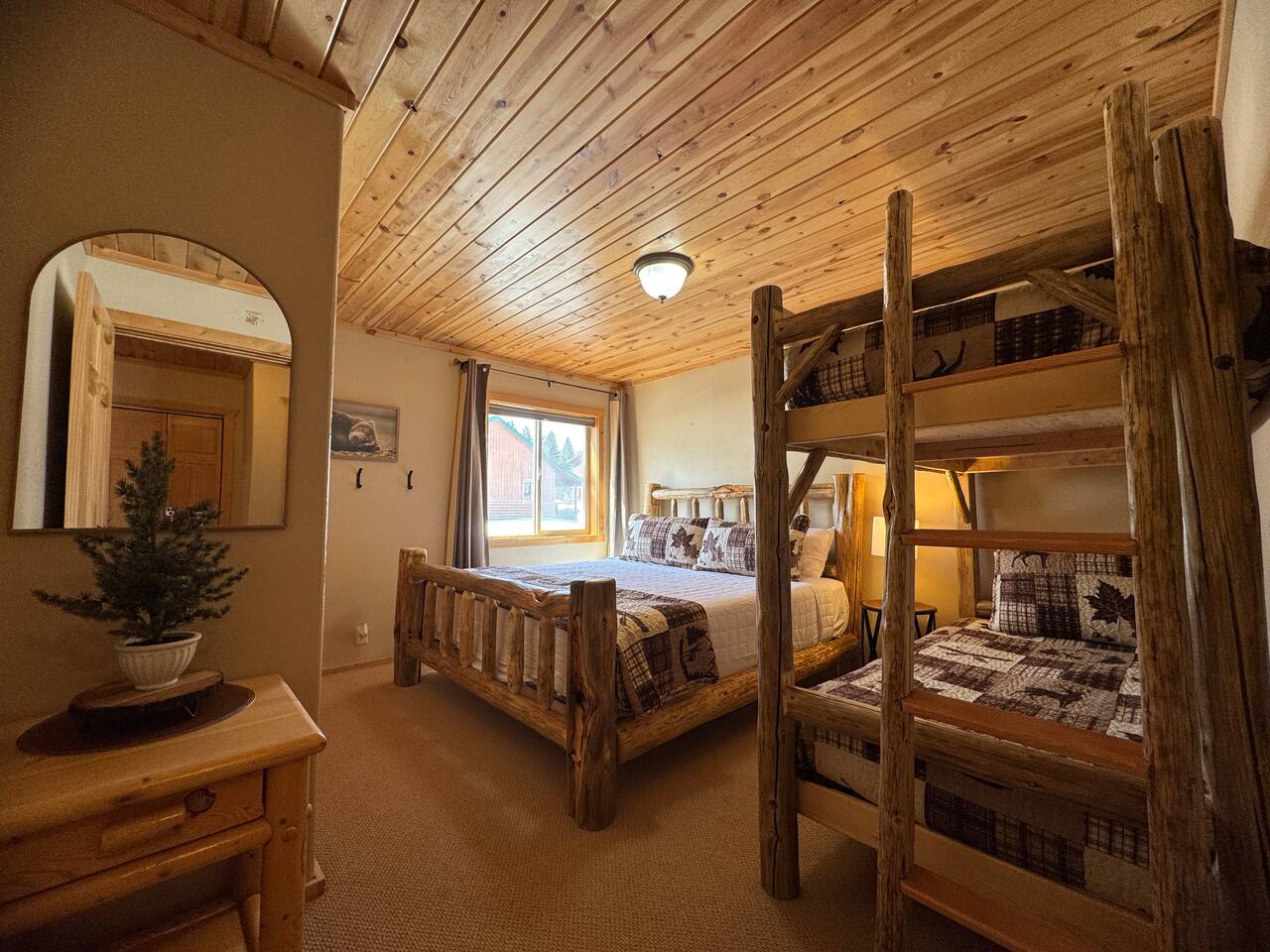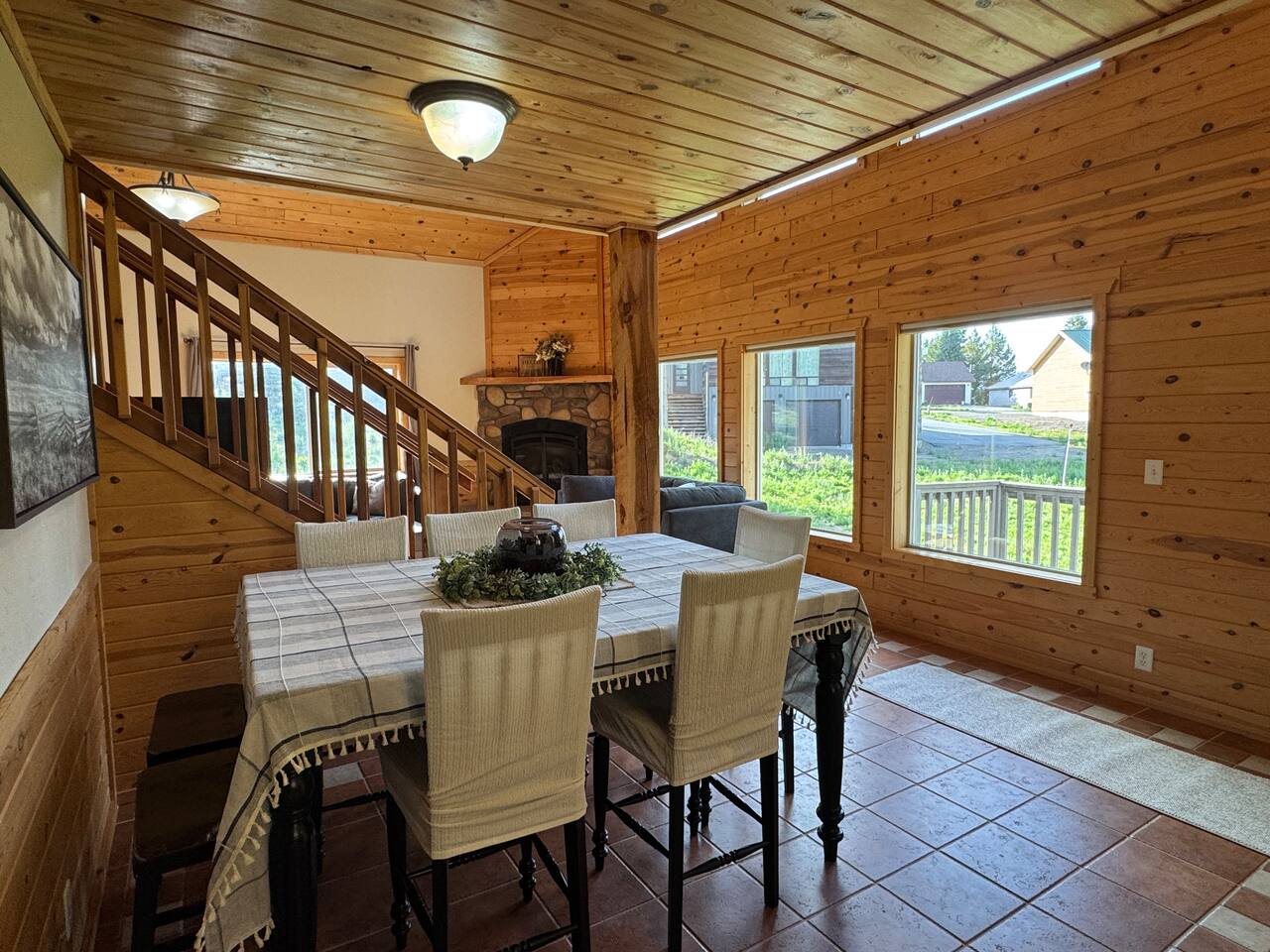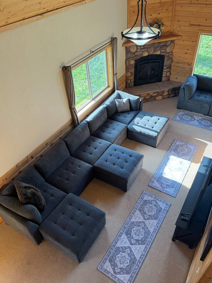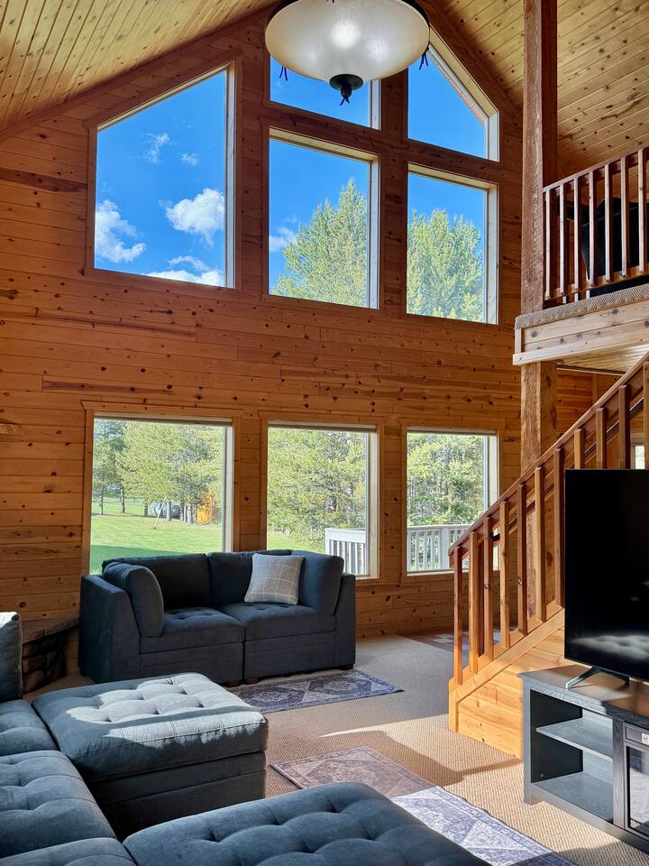 This charming cabin is conveniently located just off of Highway 20 less than a half hour from the West entrance to Yellowstone National Park. With 4 private bedrooms, 2 bathrooms, 2 living rooms, beautiful floor to ceiling windows and a relaxing outdoor space, it's a comfortable home base that offers easy access to year-round outdoor activities The cabin is fully stocked with all the amenities you'll need to enjoy a wonderful and hassle-free vacation. The peaceful neighborhood is quiet and being located at a dead end offers plenty of privacy. There are nearby opportunities for shopping, dining, and recreation within a short distance. Cabin Layout: Main Level - 2 Bedrooms each with king beds and single bunks Bathroom with tub/shower Laundry area Kitchen Dining area Large living room with sectional couch Upstairs- Bedroom with queen bed and 2 single beds Bedroom with queen bed and single bunks Open loft area couch and futon Bathroom with tub/shower ⭐️You will notice that the cabin has more beds available than the number of occupants we allow. You'll also see that there are just 2 bathrooms so if there were 16 people in the cabin at once, bathroom space might be an issue. Therefore, the bedrooms are set up to work best for a couple in the main bed and then a kid(s) in the single beds - or whatever configuration works best for your group. Please just note that although there are many available beds, we don't recommend over occupying the cabin. The rest of the space i.e. kitchen, dining area etc., doesn't comfortably fit 16 adults. ⭐️20 mins to West Yellowstone National Park ⭐️2 hours to Grand Teton National Park ⭐️88 miles to Idaho Falls Regional Airport ⭐️112 miles to Bozeman International Airport