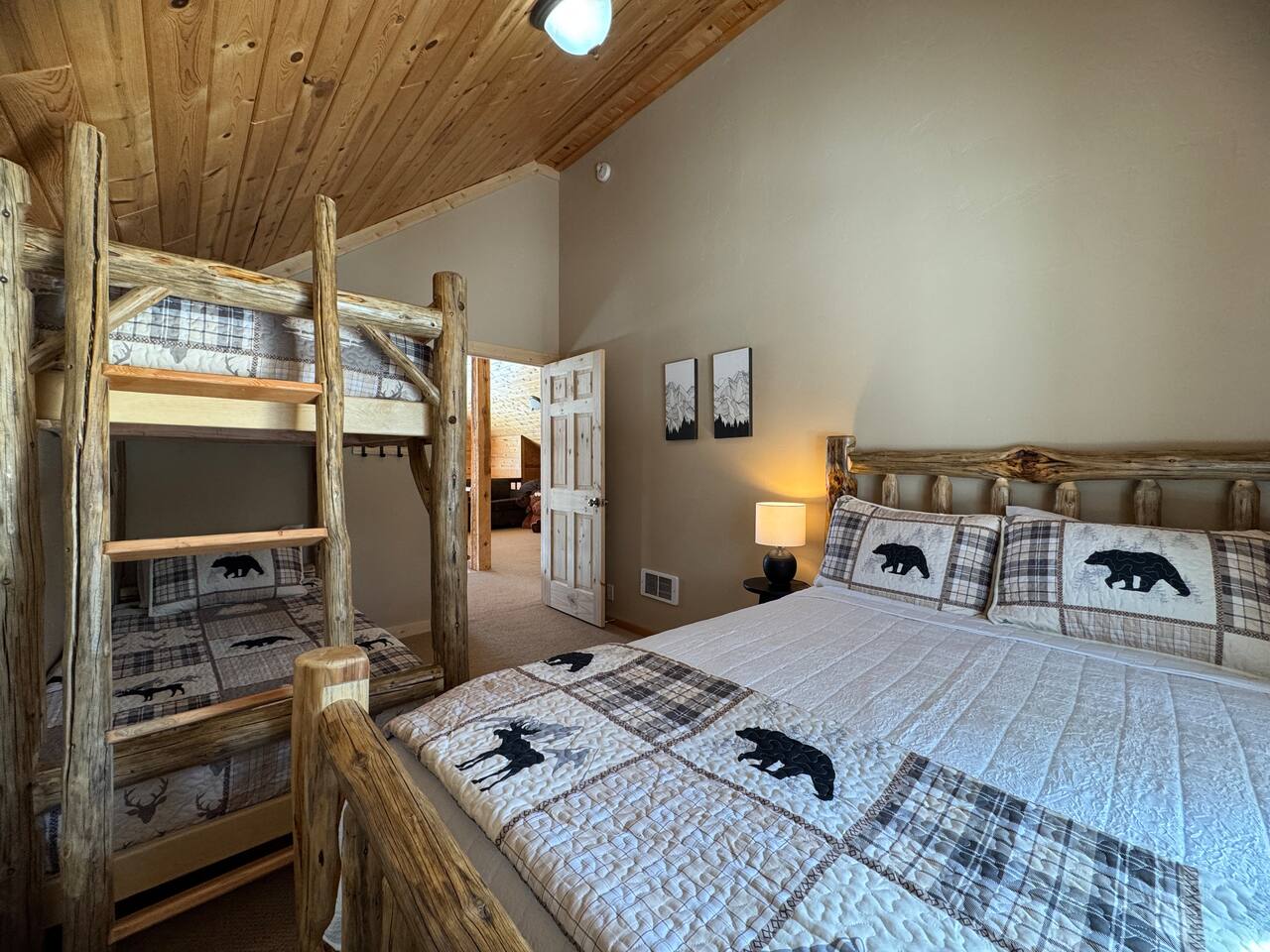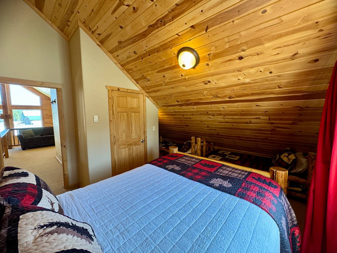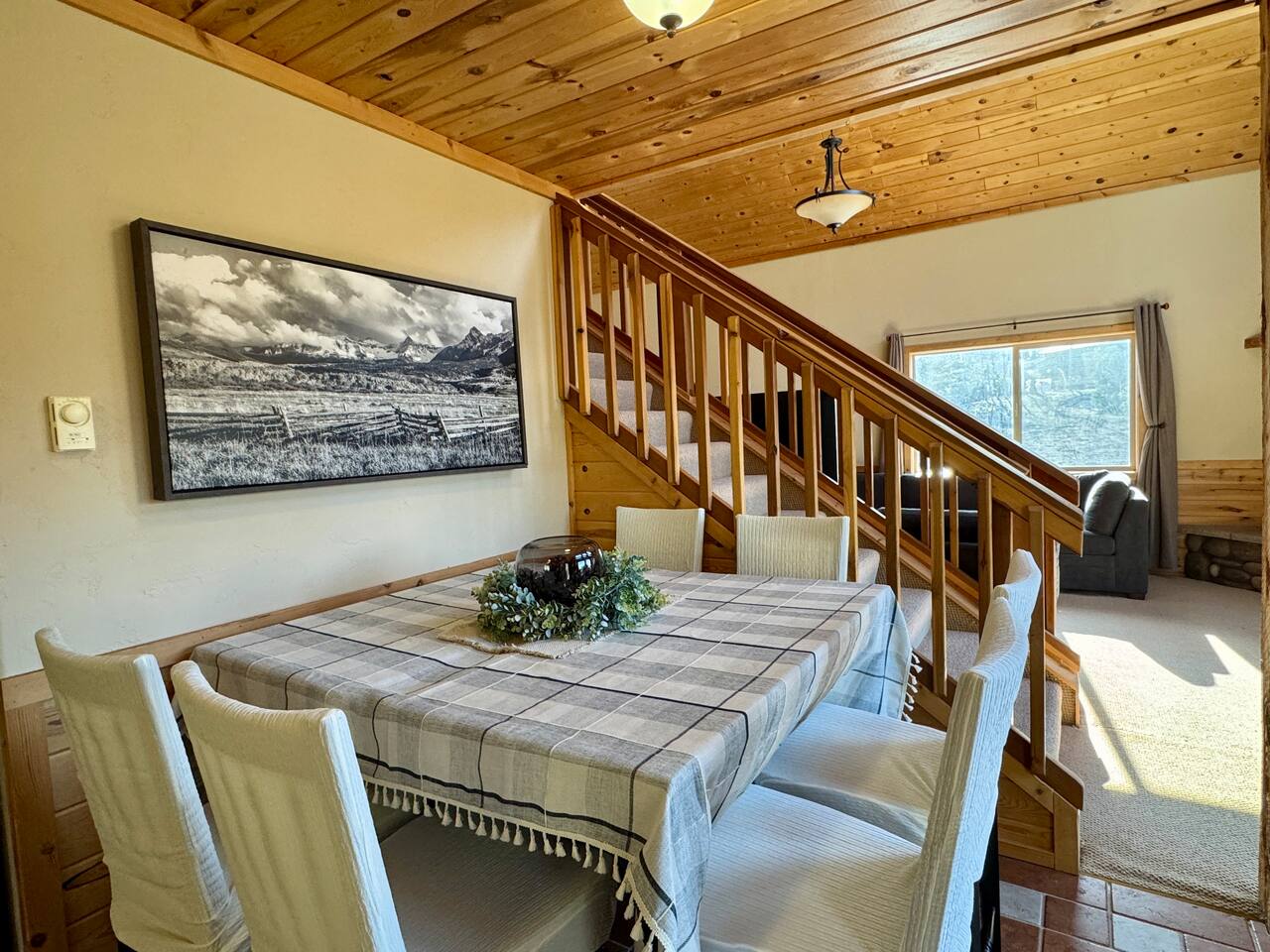 This charming cabin is conveniently located just off of Highway 20 less than a half hour from the West entrance to Yellowstone National Park. With 4 private bedrooms, 2 bathrooms, 2 living rooms, beautiful floor to ceiling windows and a relaxing outdoor space, it's a comfortable home base that offers easy access to year-round outdoor activities The cabin is fully stocked with all the amenities you'll need to enjoy a wonderful and hassle-free vacation. The peaceful neighborhood is quiet and being located at a dead end offers plenty of privacy. There are nearby opportunities for shopping, dining, and recreation within a short distance. Cabin Layout: Main Level - 2 Bedrooms each with king beds and single bunks Bathroom with tub/shower Laundry area Kitchen Dining area Large living room with sectional couch Upstairs- Bedroom with queen bed and 2 single beds Bedroom with queen bed and single bunks Open loft area couch and futon Bathroom with tub/shower ⭐️You will notice that the cabin has more beds available than the number of occupants we allow. You'll also see that there are just 2 bathrooms so if there were 16 people in the cabin at once, bathroom space might be an issue. Therefore, the bedrooms are set up to work best for a couple in the main bed and then a kid(s) in the single beds - or whatever configuration works best for your group. Please just note that although there are many available beds, we don't recommend over occupying the cabin. The rest of the space i.e. kitchen, dining area etc., doesn't comfortably fit 16 adults. ⭐️20 mins to West Yellowstone National Park ⭐️2 hours to Grand Teton National Park ⭐️88 miles to Idaho Falls Regional Airport ⭐️112 miles to Bozeman International Airport