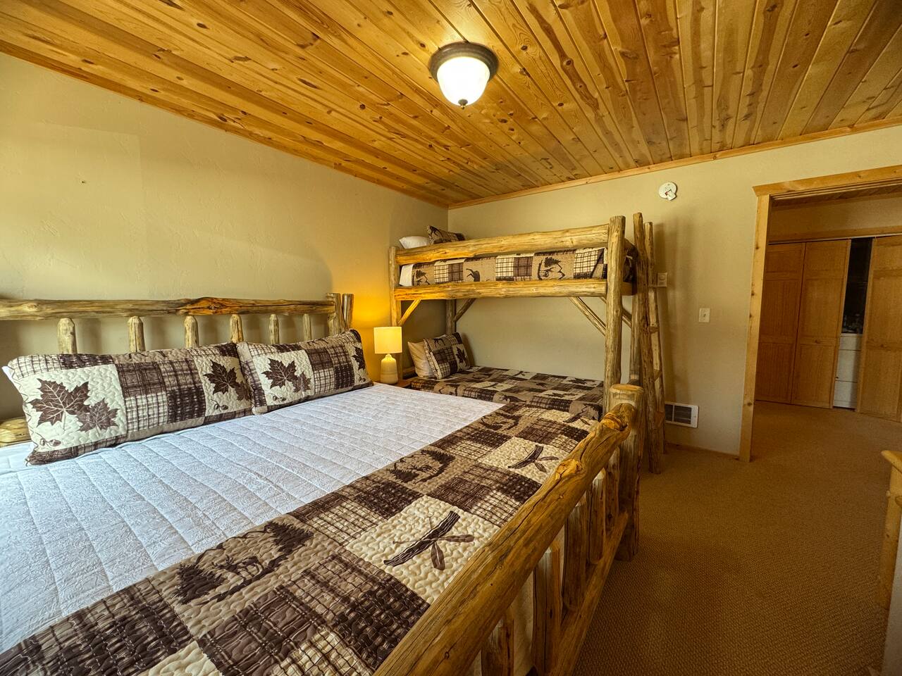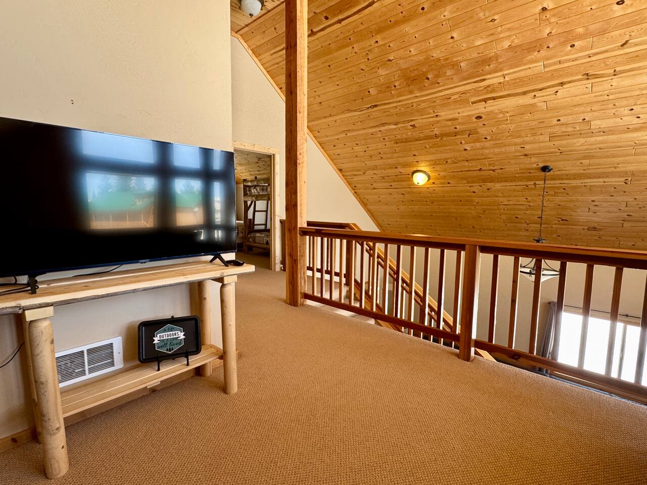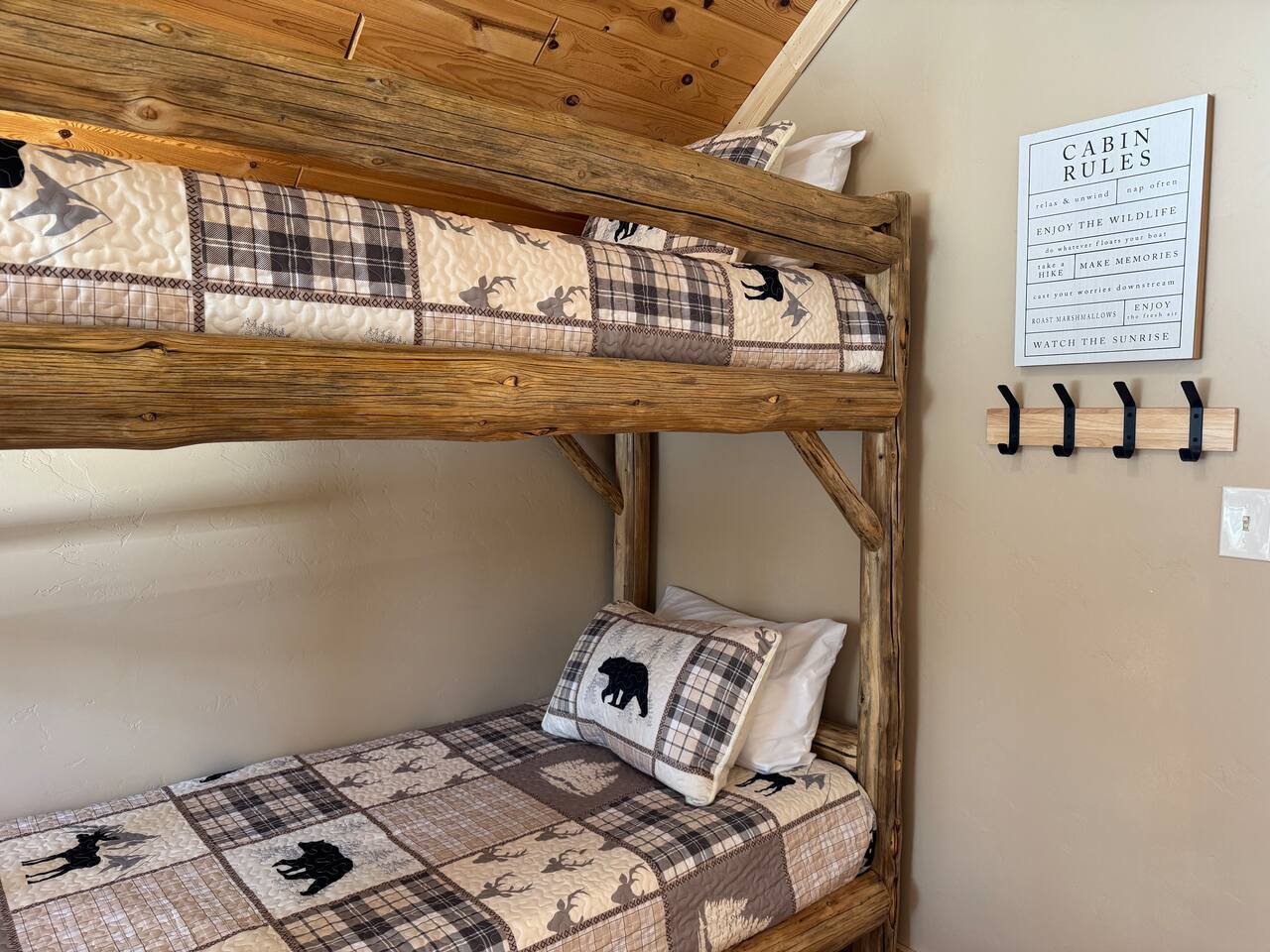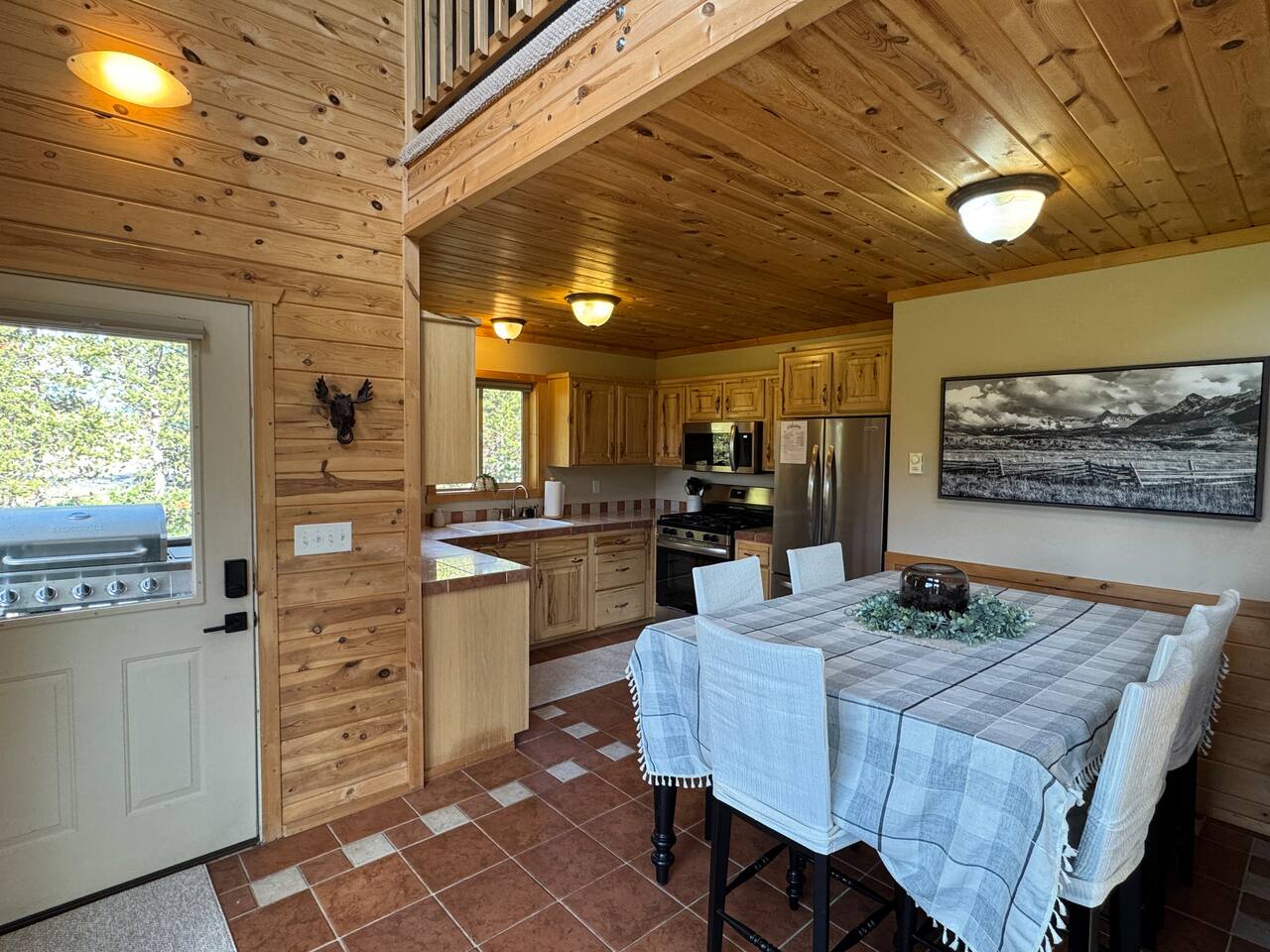 This charming cabin is conveniently located just off of Highway 20 less than a half hour from the West entrance to Yellowstone National Park. With 4 private bedrooms, 2 bathrooms, 2 living rooms, beautiful floor to ceiling windows and a relaxing outdoor space, it's a comfortable home base that offers easy access to year-round outdoor activities The cabin is fully stocked with all the amenities you'll need to enjoy a wonderful and hassle-free vacation. The peaceful neighborhood is quiet and being located at a dead end offers plenty of privacy. There are nearby opportunities for shopping, dining, and recreation within a short distance. Cabin Layout: Main Level - 2 Bedrooms each with king beds and single bunks Bathroom with tub/shower Laundry area Kitchen Dining area Large living room with sectional couch Upstairs- Bedroom with queen bed and 2 single beds Bedroom with queen bed and single bunks Open loft area couch and futon Bathroom with tub/shower ⭐️You will notice that the cabin has more beds available than the number of occupants we allow. You'll also see that there are just 2 bathrooms so if there were 16 people in the cabin at once, bathroom space might be an issue. Therefore, the bedrooms are set up to work best for a couple in the main bed and then a kid(s) in the single beds - or whatever configuration works best for your group. Please just note that although there are many available beds, we don't recommend over occupying the cabin. The rest of the space i.e. kitchen, dining area etc., doesn't comfortably fit 16 adults. ⭐️20 mins to West Yellowstone National Park ⭐️2 hours to Grand Teton National Park ⭐️88 miles to Idaho Falls Regional Airport ⭐️112 miles to Bozeman International Airport