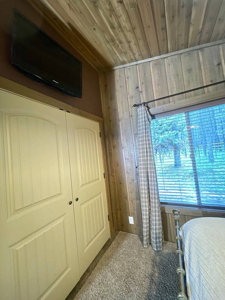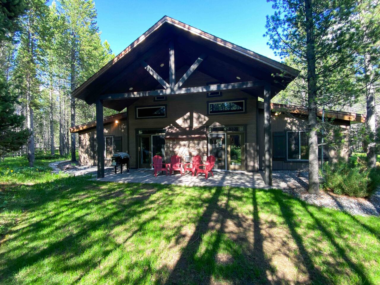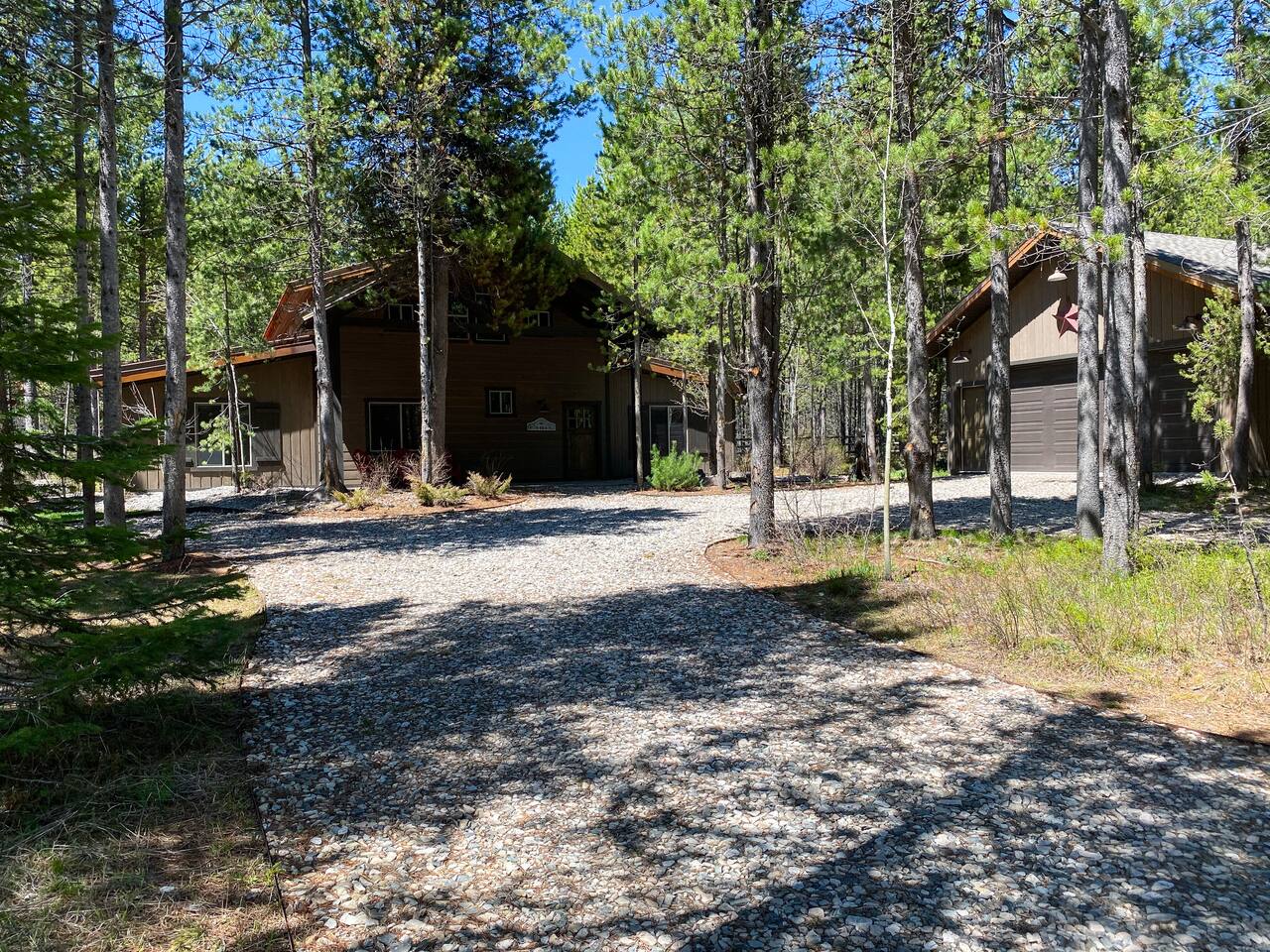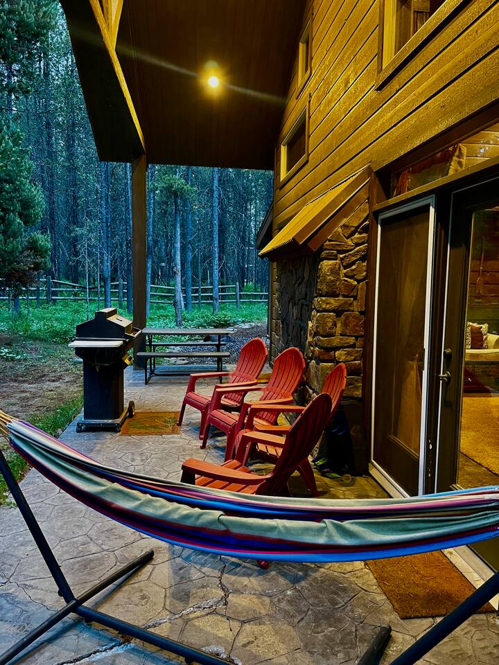 The floor plan is set up perfectly for multiple families with 4 bedrooms on the main floor and a loft with 7 single beds above the ground floor. The stamped concrete floors are such a beautiful feature that keeps the cabin cool during the warm Idaho summers. The cozy fireplace and heaters in each area of the cabin help everyone stay as warm and toasty as they like during the cold winter months. The cabin is located only 22 miles from West Yellowstone, gateway to Yellowstone National Park and 75 miles from Grand Teton National Park, on the desirable Bill's Island gated community. The proximity to Yellowstone along with the extraordinary hunting, fishing, water sports and hundreds of miles of ATV trails make Island Park a perfect summer vacation spot. During the winter, we receive an average snowfall of 9 feet which results in beautiful scenery and the perfect area for enjoying miles of groomed snowmobile trails and acres and acres of open meadows to play in. Downhill skiing and snowboarding at Grand Targhee or Big Sky is not far away or take advantage of the snow coach ride in Yellowstone Park. Cross country skiing, snowshoeing and ice fishing are other popular winter activities that will make days end at the cabin in front of the fireplace oh so inviting. Fully appointed with high end appliances, furnishings, appliances and necessities, the lodge has everything you need to just show up and enjoy. Being nestled into the Bills Island community provides the sought after mix of relaxing natural surroundings with the ability to find new friends at either of the two Lodges nearby. Bring your toys! Lots of nearby trails and access offers great opportunities for riders of all levels and you can ride straight from the cabin. You'll love the opportunity to relax, unwind, and spend some Lazy Daze at the Lodge.
