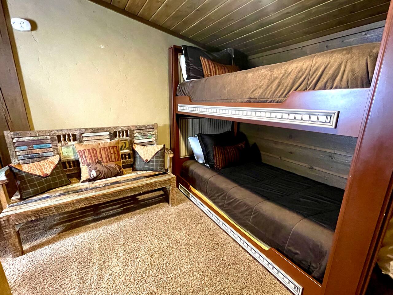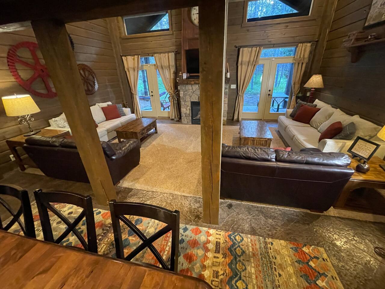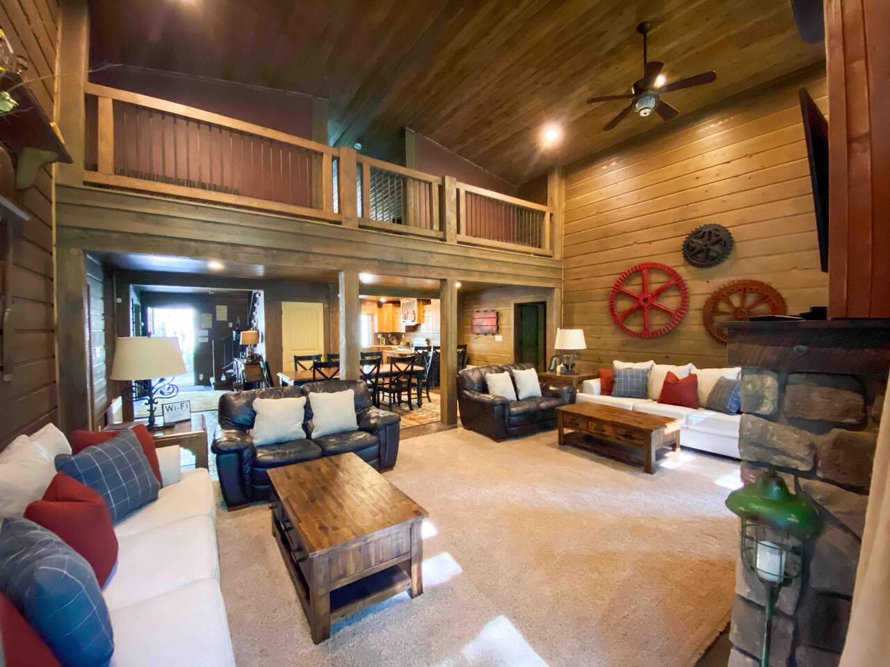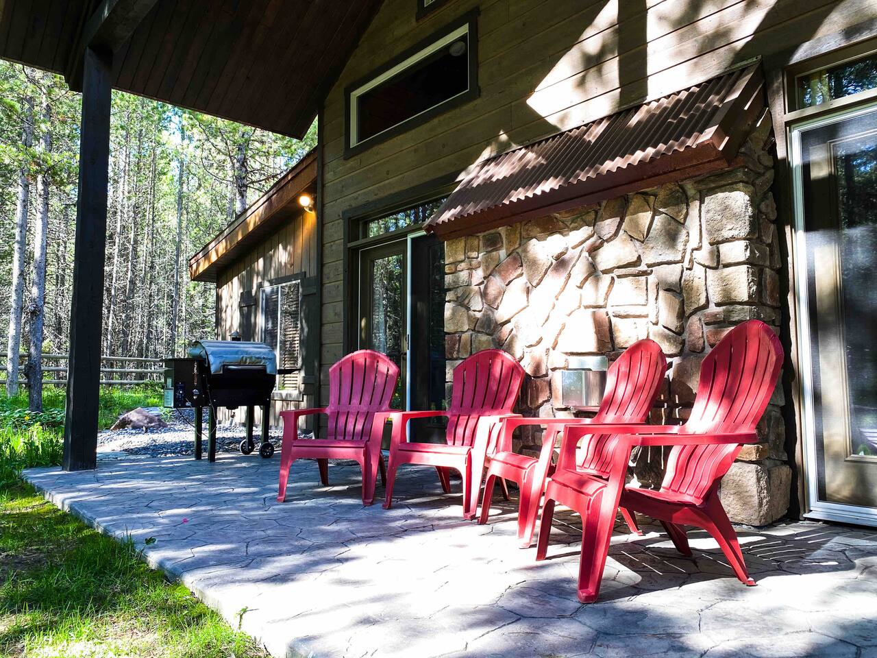 The floor plan is set up perfectly for multiple families with 4 bedrooms on the main floor and a loft with 7 single beds above the ground floor. The stamped concrete floors are such a beautiful feature that keeps the cabin cool during the warm Idaho summers. The cozy fireplace and heaters in each area of the cabin help everyone stay as warm and toasty as they like during the cold winter months. The cabin is located only 22 miles from West Yellowstone, gateway to Yellowstone National Park and 75 miles from Grand Teton National Park, on the desirable Bill's Island gated community. The proximity to Yellowstone along with the extraordinary hunting, fishing, water sports and hundreds of miles of ATV trails make Island Park a perfect summer vacation spot. During the winter, we receive an average snowfall of 9 feet which results in beautiful scenery and the perfect area for enjoying miles of groomed snowmobile trails and acres and acres of open meadows to play in. Downhill skiing and snowboarding at Grand Targhee or Big Sky is not far away or take advantage of the snow coach ride in Yellowstone Park. Cross country skiing, snowshoeing and ice fishing are other popular winter activities that will make days end at the cabin in front of the fireplace oh so inviting. Fully appointed with high end appliances, furnishings, appliances and necessities, the lodge has everything you need to just show up and enjoy. Being nestled into the Bills Island community provides the sought after mix of relaxing natural surroundings with the ability to find new friends at either of the two Lodges nearby. Bring your toys! Lots of nearby trails and access offers great opportunities for riders of all levels and you can ride straight from the cabin. You'll love the opportunity to relax, unwind, and spend some Lazy Daze at the Lodge.