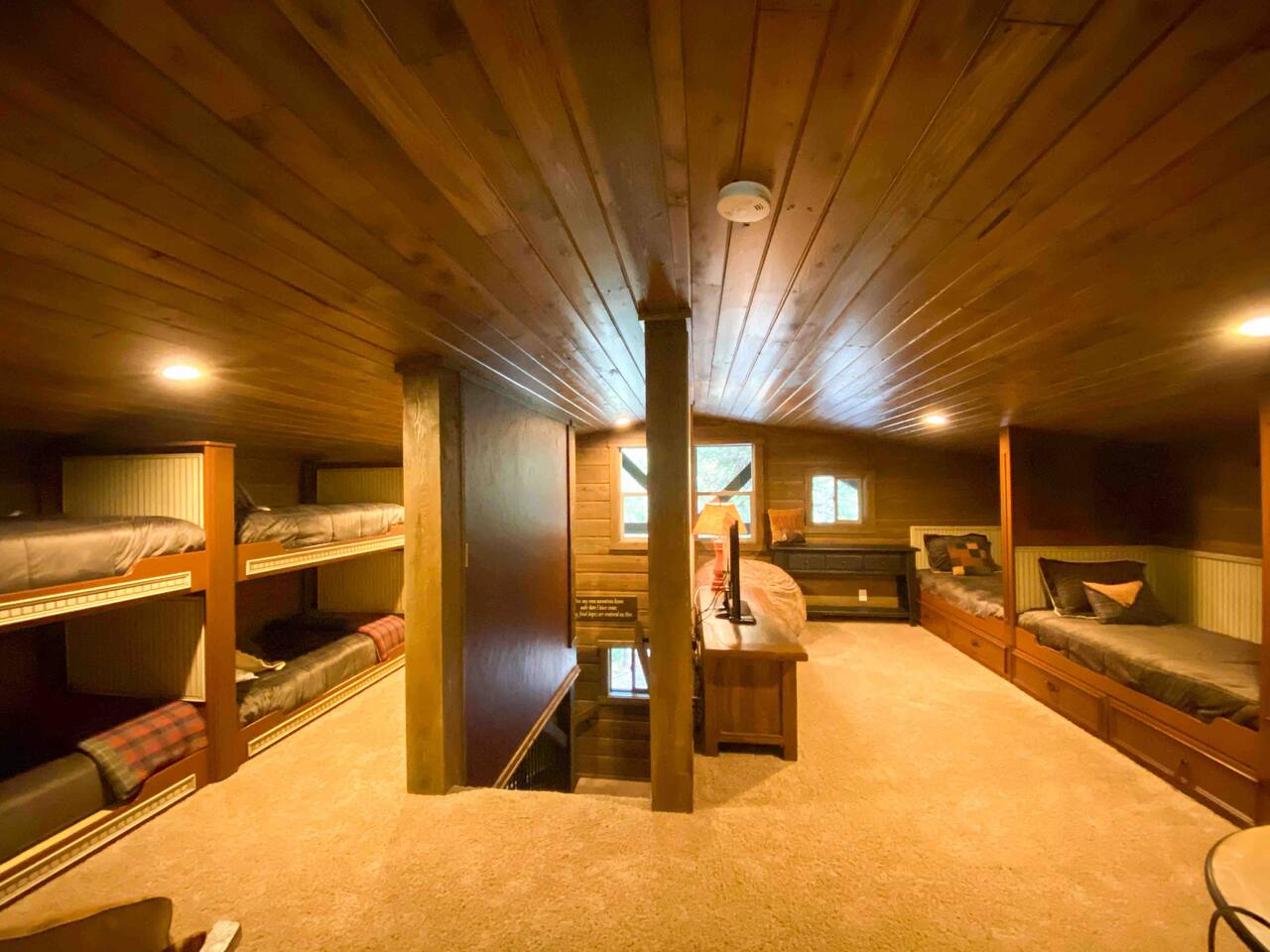 Nestled in a quiet corner on Bill's Island is a beautiful cabin waiting for you to come create lasting memories with your friends and family. Lazy Daze Lodge offers a unique mix of luxury and comfort combined nicely to create a warm, cozy atmosphere for you to enjoy as a home base while you enjoy all your outdoor adventures. It's truly a unique and beautiful cabin that has so many extras!