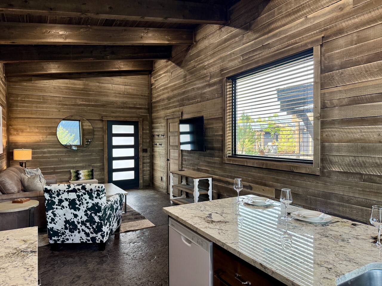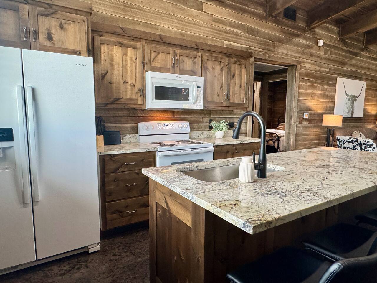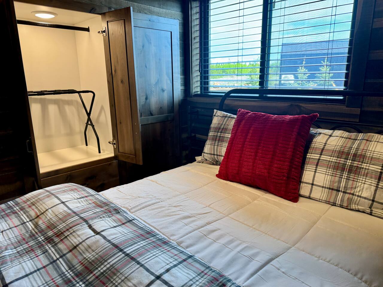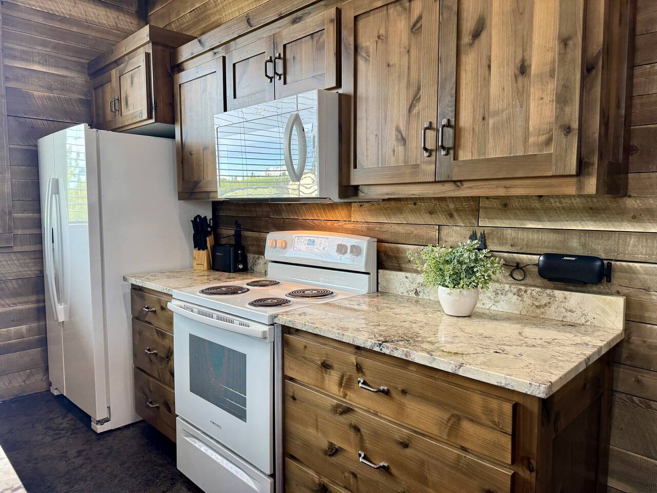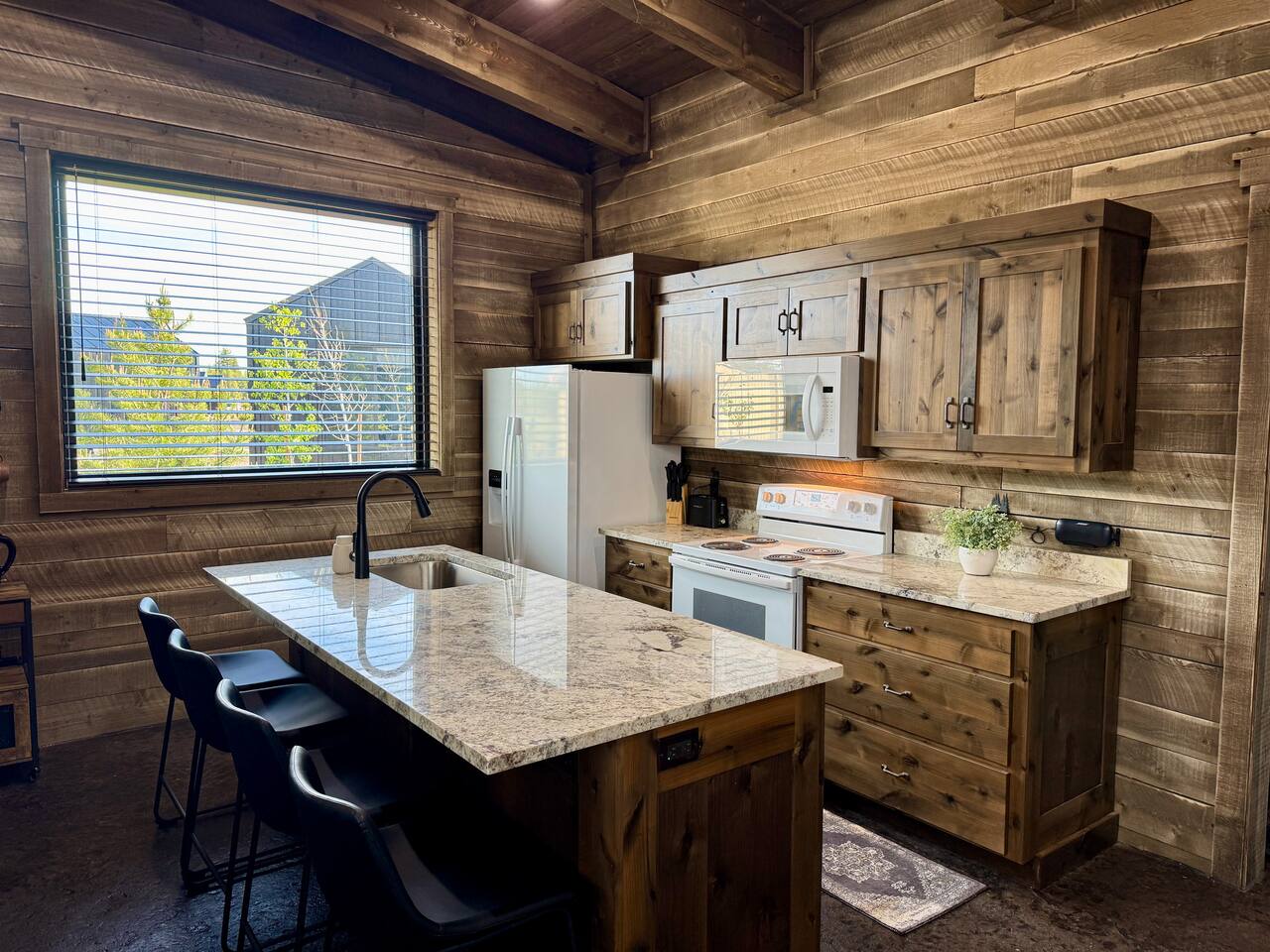 This newly built cabin is conveniency located just off Hwy 20 in the area of Island Park known as Last Chance. It's tucked back off the highway, making it extra convenient to access any time of day or night! Pull right up to the cabin and easily unload your gear right into the front door. No dirt driveways or stairs to mess with! Enjoy the proximity of local conveniences that make it easy to fill up your gas tank or cooler as you head out on your daily adventures. Then, at the end of a long day, enjoy a short walk across the road to soak in an Idaho sunset while dining on the patio at a local restaurant overlooking the river or out of your own picnic basket on the riverbank. The sunsets here are absolutely breathtaking. The chalet offers generous space and a long list of amenities that help make your time here extra comfortable. From the fully stocked kitchen with all the tools and appliances you need to create a homemade meal to the whole home air conditioning that you’ll love returning to after a day in the sun. The cabin has a coffee/tea bar with a Keurig coffee machine along with k-cups and a variety of teas. The living room is a great place to relax and unwind as you stream your favorite show on the large smart TV, play games, read a book, plot your next days' adventures or sit around and tell fishing stories with your pals. Then retreat to your private bedrooms for a restful nights' sleep. Each bedroom has its own custom closet and drawers, lamps, bedside tables, device charging outlet and most importantly, clean and comfortable sheets and bedding on top of comfortable mattresses. The bathroom sits between the two bedrooms for easy access and we provide plenty of high-quality towels, hand towels and washcloths. For laundry, there is a combo washer/dryer that is perfect for small loads. They do take a while to complete a full wash and dry cycle so it’s ideal for tossing in a load before you head out for the day and without having to transfer the load to the dryer, you’ll come back to find it all dry! Outside, there is a propane grill (propane provided) and some seating for soaking in those gorgeous Idaho evenings. Bear proof trash bins are also conveniently located at each cabin so there is no need to haul off your own garbage.