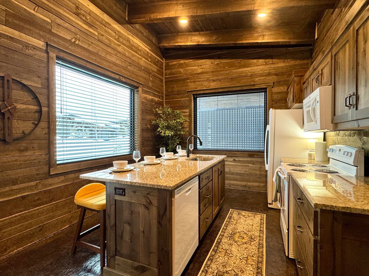 This newly built cabin is conveniency located just off Hwy 20 in the area of Island Park known as Last Chance. It's tucked back in a little quiet community of other newly built cabins that offer travelers comfortable and modern accommodations for up to 4 adults. Pull right up to the cabin and easily unload your gear right into the front door. No dirt driveways or stairs to mess with! The spacious kitchen has everything you'll need to prepare a homemade meal or walk right across the road and enjoy a delicious meal at TroutHunter. It's well known for having the best breakfast around! The cabin has a coffee/tea bar where we provide a Keurig coffee machine along with and k-cups and a variety of teas. The living room is a great place to relax and unwind as you stream your favorite show the smart TV. Play games, read a book, plot your next days' adventures or sit around and tell fishing stories with your pals. Then retreat to your private bedrooms for a restful nights' sleep. Each bedroom has its own custom closet and drawers, lamps, bedside tables, device charging outlet and most importantly, clean and comfortable sheets and bedding on top of comfortable mattresses. There are extra mirrors in each of the bedrooms. The bathroom sits between the two bedrooms for easy access, and we provide plenty of high-quality towels, hand towels and wash cloths. Outside there is a propane grill (propane provided) and some additional seating for soaking in those gorgeous Idaho evenings.