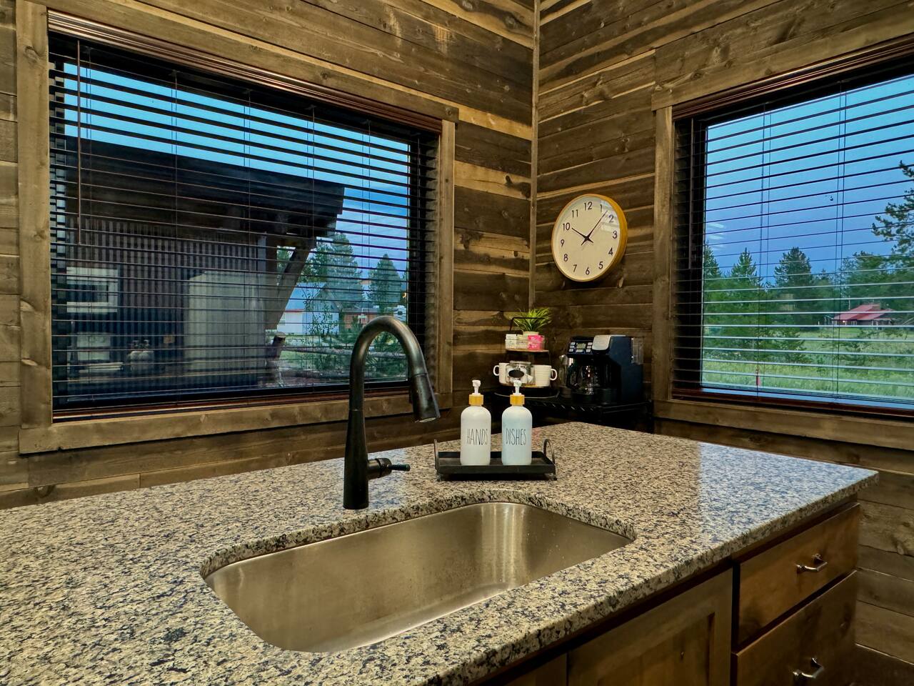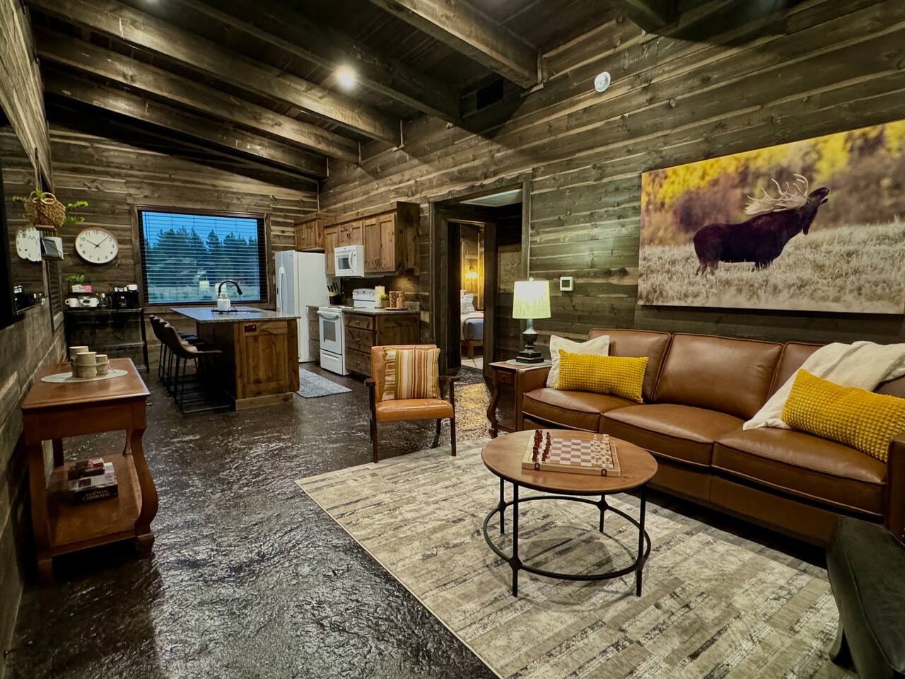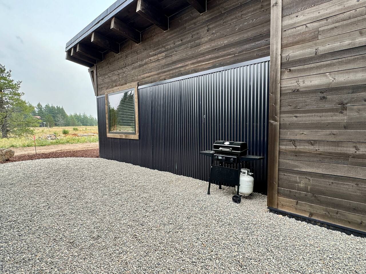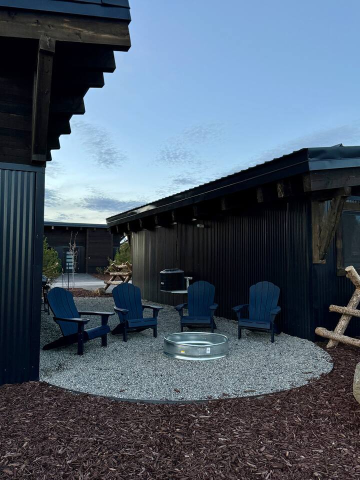 This newly built cabin is conveniency located just off Hwy 20 in the area of Island Park known as Last Chance. It's tucked back in a little quiet community of other newly built cabins that offer travelers comfortable and modern accommodations for up to 4 adults. Pull right up to the cabin and easily unload your gear right into the front door. No dirt driveways or stairs to mess with! The spacious kitchen has everything you'll need to prepare a homemade meal or walk right across the road and enjoy a delicious meal at TroutHunter. It's well known for having the best breakfast around! The cabin has a coffee/tea bar where we provide a single cup/drip combo coffee machine along with coffee grounds and k-cups. The living room is a great place to relax and unwind as you stream your favorite show on the 65" smart TV. Play games, read a book, plot your next days' adventures or sit around and tell fishing stories with your pals. Then retreat to your private bedrooms for a restful nights' sleep. Each bedroom has its own custom closet and drawers, lamps, bedside tables, device charging outlet and most importantly, clean and comfortable sheets and bedding on top of comfortable mattresses. There are extra mirrors in each of the bedrooms as well as a desk for working remotely. The bathroom sits between the two bedrooms for easy access, and we provide plenty of high-quality towels, hand towels and wash cloths. Outside there is a propane grill (propane provided) and some additional seating for soaking in those gorgeous Idaho evenings. You also have access to the 2 community hot tubs that are shared between the cabins.