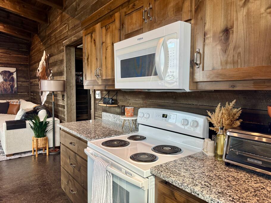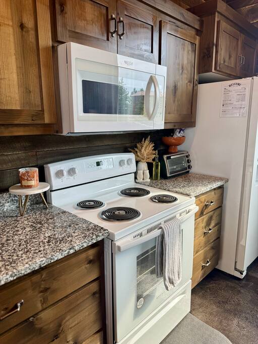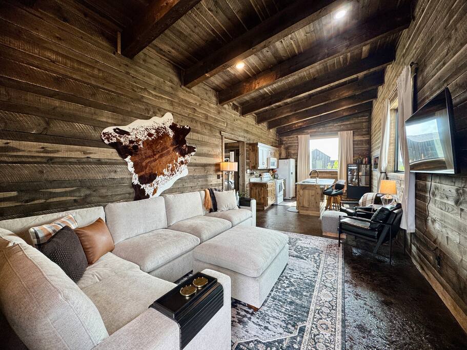 This newly built cabin is conveniency located just off Hwy 20 in the area of Island Park known as Last Chance. It's tucked back off the highway, making it extra convenient to access any time of day or night! Pull right up to the cabin and easily unload your gear right into the front door. No dirt driveways or stairs to mess with! Enjoy the proximity of local conveniences that make it easy to fill up your gas tank or cooler as you head out on your daily adventures. Then, at the end of a long day, enjoy a short walk across the road to soak in an Idaho sunset while dining on the patio at a local restaurant overlooking the river or out of your own picnic basket on the riverbank. The sunsets here are absolutely breathtaking. The chalet offers generous space and a long list of amenities that help make your time here extra comfortable. From the fully stocked kitchen with all the tools and appliances you need to create a homemade meal to the whole home air conditioning that you’ll love returning to after a day in the sun. The cabin has a coffee/tea bar with a Keurig coffee machine along with k-cups and a variety of teas. The living room is a great place to relax and unwind as you stream your favorite show on the large smart TV, play games, read a book, plot your next days' adventures or sit around and tell fishing stories with your pals. Then retreat to your private bedrooms for a restful nights' sleep. Each bedroom has its own custom closet and drawers, lamps, bedside tables, device charging outlet and most importantly, clean and comfortable sheets and bedding on top of comfortable mattresses. The bathroom sits between the two bedrooms for easy access and we provide plenty of high-quality towels, hand towels and washcloths. For laundry, we’ve updated this unit with brand new full-size washer and dryers in July 2025 rather than the small combo machines in several other units. Outside, there is a propane grill (propane provided) and some seating for soaking in those gorgeous Idaho evenings. Bear proof trash bins are also conveniently located at each cabin so there is no need to haul off your own garbage.