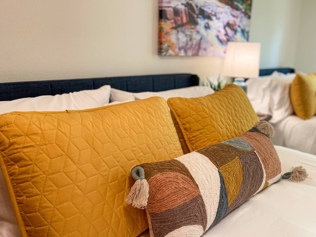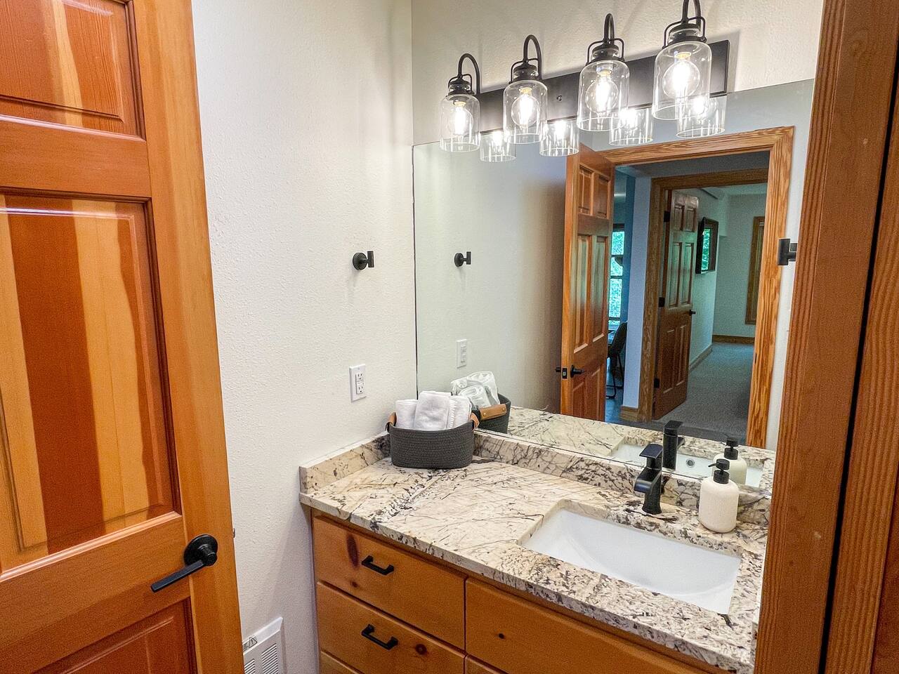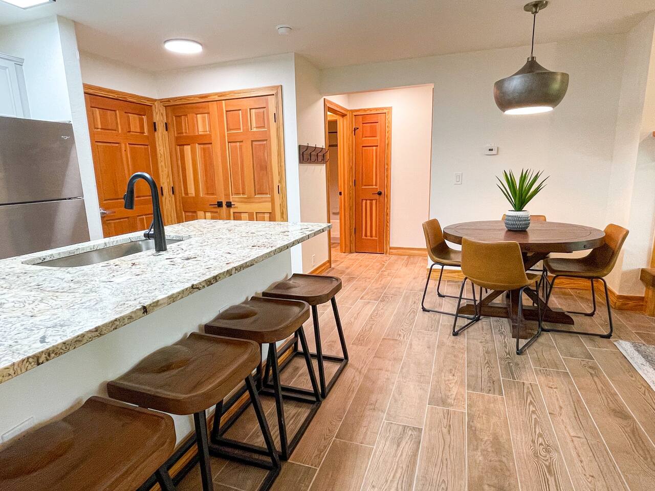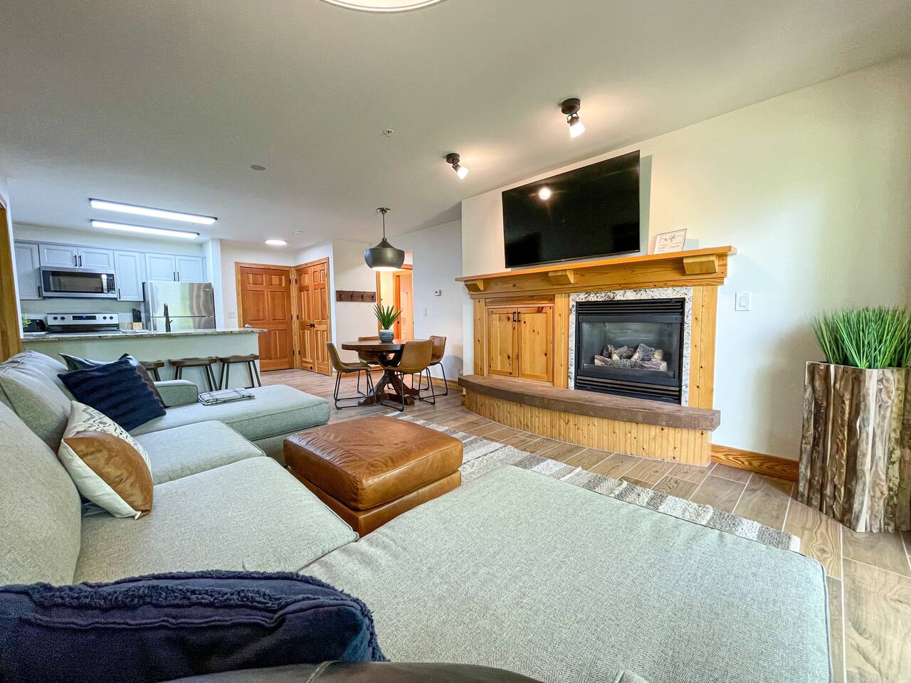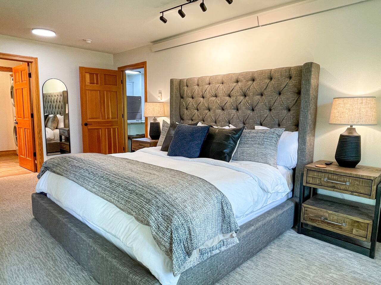 Aside from being in such a prime location for your "home base", the resort offers a community hot tub and fitness center for our guests to enjoy along with free parking, speedy Wi-Fi, and all the comforts of home. Teton Valley Bus Service also stops directly in front of the property for easy winter transport to Targhee! Our privately owned condo has a gorgeous fully equipped kitchen with barstool seating, a central dining area and a roomy and comfortable living room with large screen TV and fireplace. Each of the bedrooms also have large TVs. Aside from the comfy beds and immaculate cleanliness of the space, my favorite part of the condo is the outdoor space where you can enjoy your morning coffee with a beautiful view from one of the two patios overlooking the creek. Bedroom 1 - King Bed Bedroom 2 - 2 Queen Beds