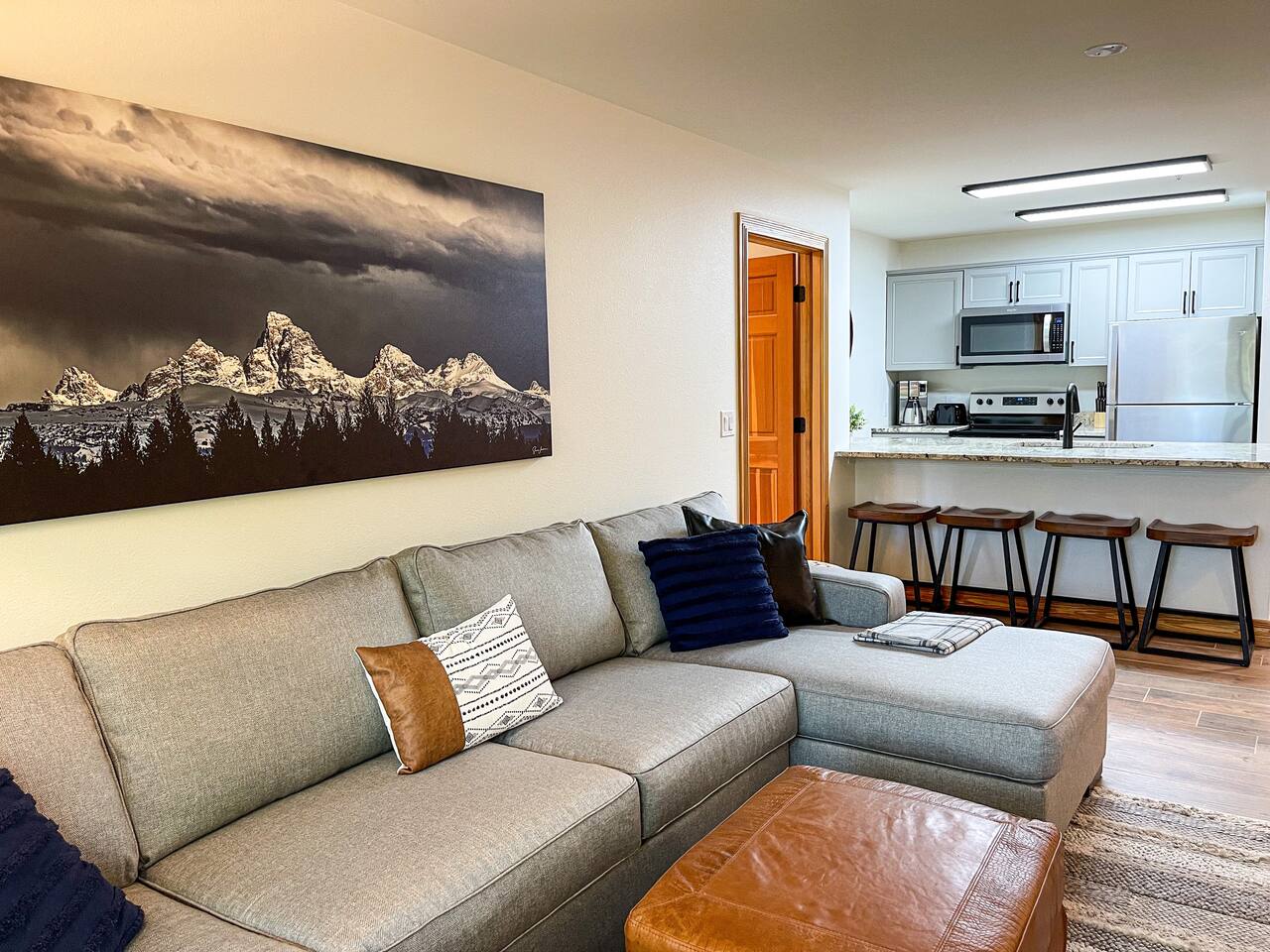 Targhee Creekside Condo is a newly renovated 2 bedroom, 2 bathroom condo located in the highly sought after Teton Creek Resort. Our corner unit sits on the second (top) floor overlooking the Teton Creek where you'll enjoy the relaxing sound of the flowing water during the summertime and the peacefulness of snow covered trees just outside your window in the winter. Just 15 mins to Grand Targhee, 1 hour to Grand Teton National Park and Jackson Hole, and 1 hour and 45 mins to West Yellowstone!