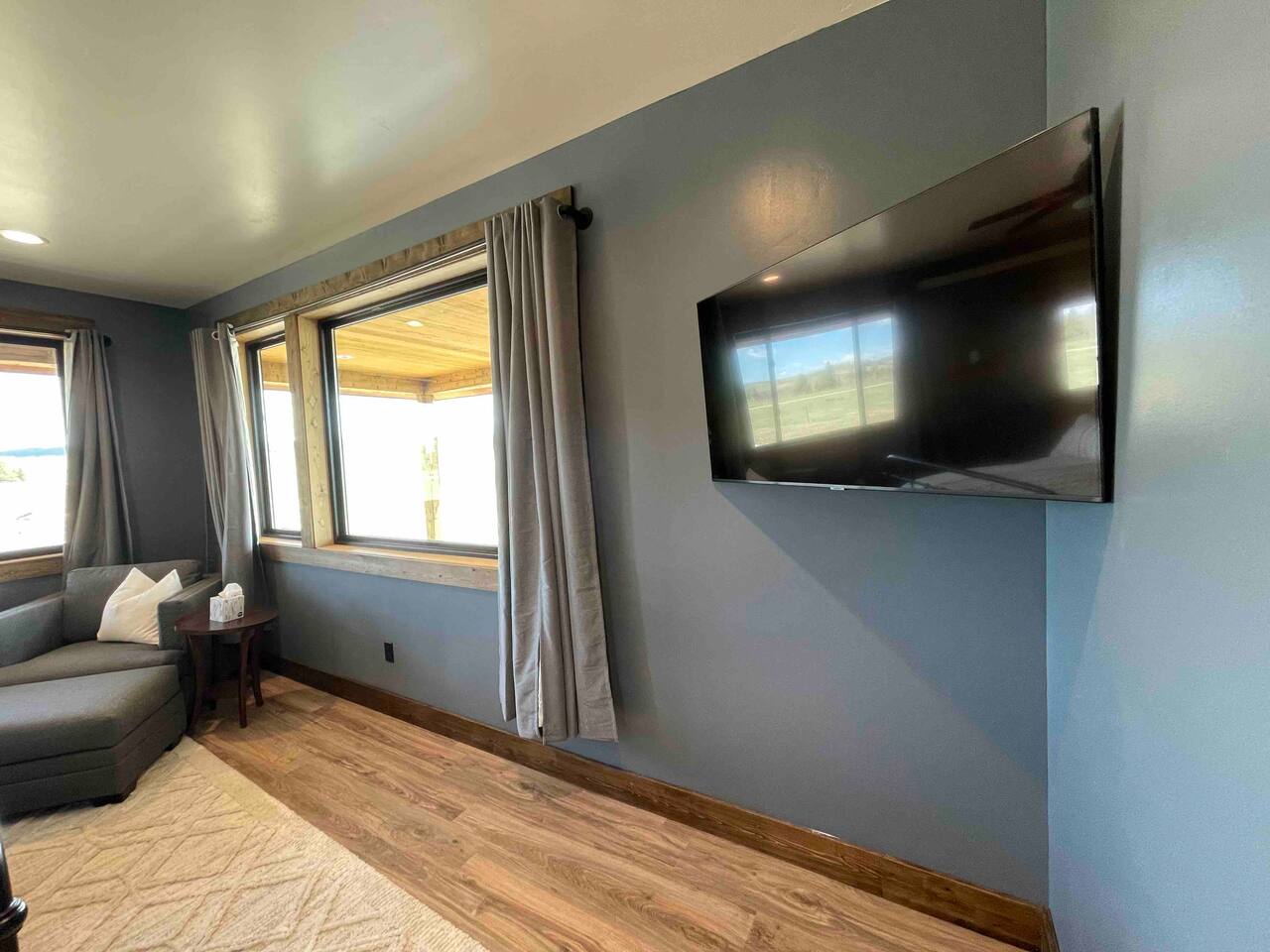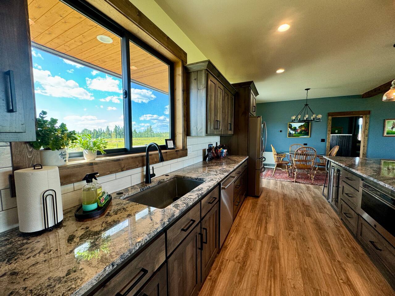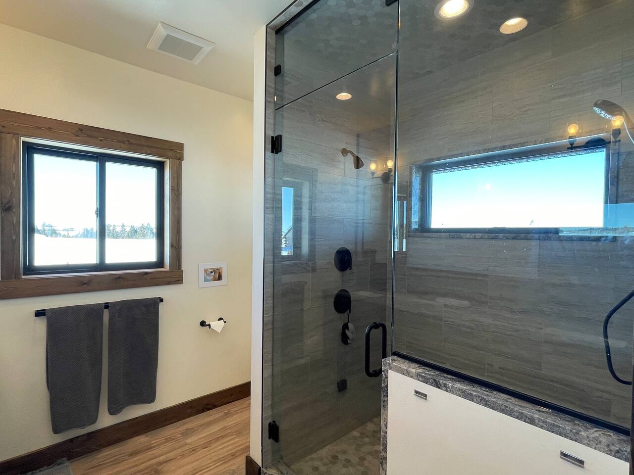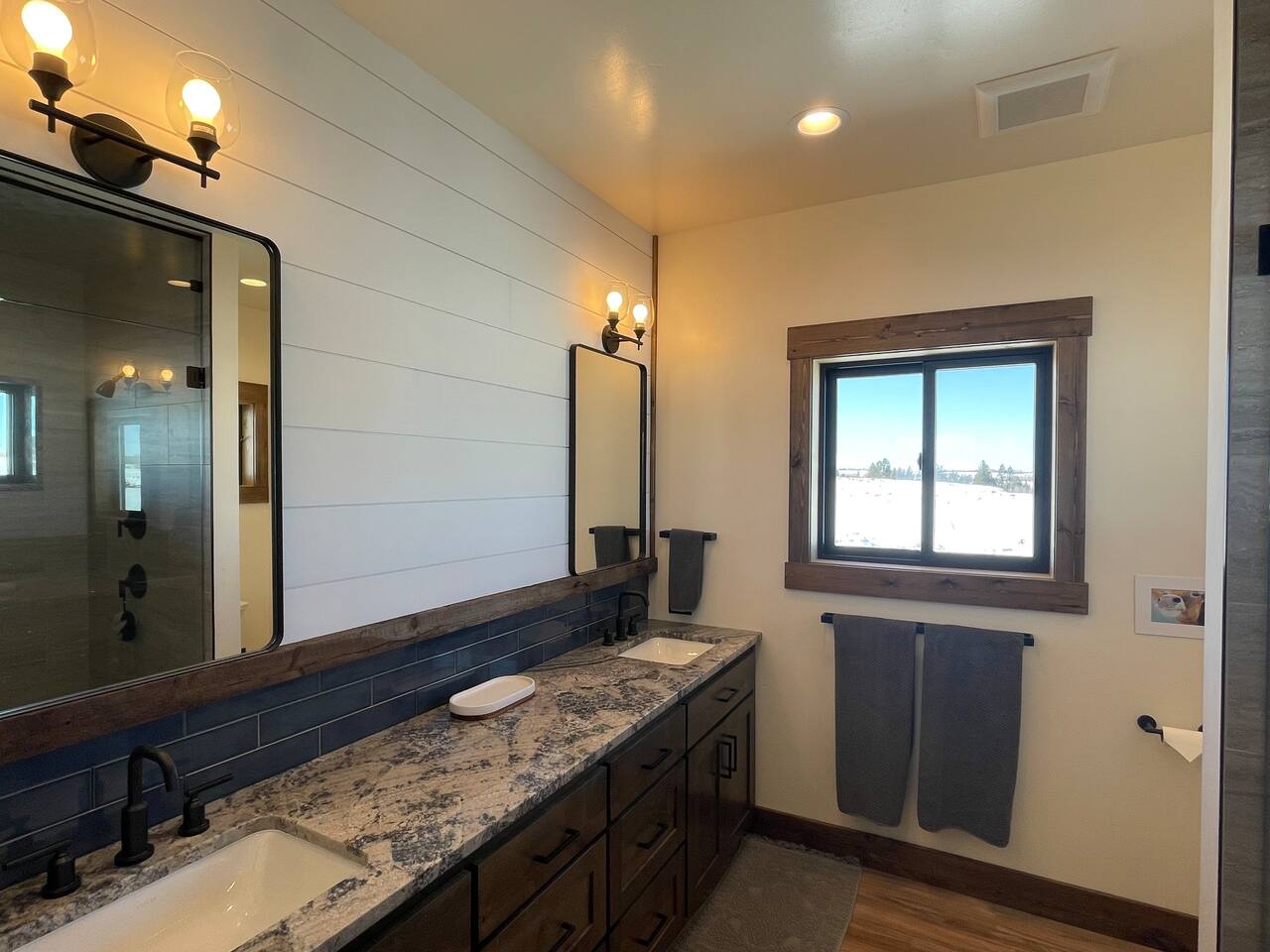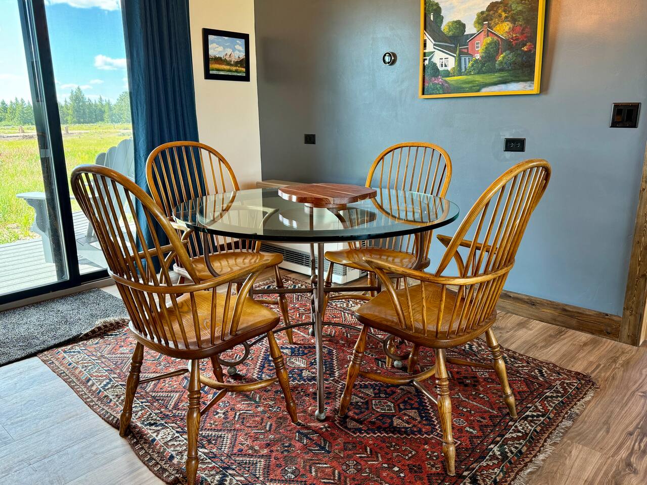 A little bit about the space: Newly built in 2023 and located on 3.2 acres on what is known as “the quiet side of the Tetons”. There are other homes in sight, but the properties are spread out, so you’ll be able to enjoy privacy and relaxation. On the main level, you’ll find a spacious kitchen with granite countertops, stainless steel appliances, six burner propane range, wine fridge and comfortable bar top seating for 6. Fully stocked with pots, pans, dinnerware and everything you need to prepare a gourmet home cooked meal. There are 2 dining tables with enough seating for the whole crew. The large primary bedroom is custom built around the main attraction – the view! There is a king bed distinctively positioned to enjoy a picture perfect view of the sunrise over the Tetons, an attached bathroom with double sinks and a beautifully designed steam shower. Along with 2 more private bedrooms, each with queen beds, the main floor offers a spacious living, a second bathroom and a large laundry room. Downstairs in the fully finished walk-out basement there are 2 private bedrooms; one with a queen bed and one with 2 singles (day bed style). There is also a section of the living room that is curtained off with 2 sets of bunk beds. The large open living room has another large TV, game table, ping pong table and comfy seating to hang out and relax. All with plenty of natural light and of course, a view of the Tetons! A few unique and interesting features of the home: The majority of the artwork is all original hand paintings from the owner’s grandmother. The canvases were found in an attic and were able to be brought back to life and beautifully displayed to set the tone throughout the home. Many pieces of the furniture are also over 150 years old. While there are vintage pieces, there is no lack of luxury and top of the line features to make your stay relaxing and enjoyable with all the comforts of home. Although Teton Valley is best known for adventure and relaxation its nice to have modern connivences nearby. Grocery stores, restaurants, coffee shops, ski shops, bike shops, fly fishing outfitters, gas stations, liquor stores and pubs are plentiful. This is a great place to stay while you visit the National Parks with convenient access to multiple entrances. -Grand Teton National Park: 1 hour drive -Yellowstone National Park West Entrance: 1.75 hour drive -Yellowstone National Park South Entrance: 2.5 hour drive -Jackson Hole, WY - 1.5 hour drive