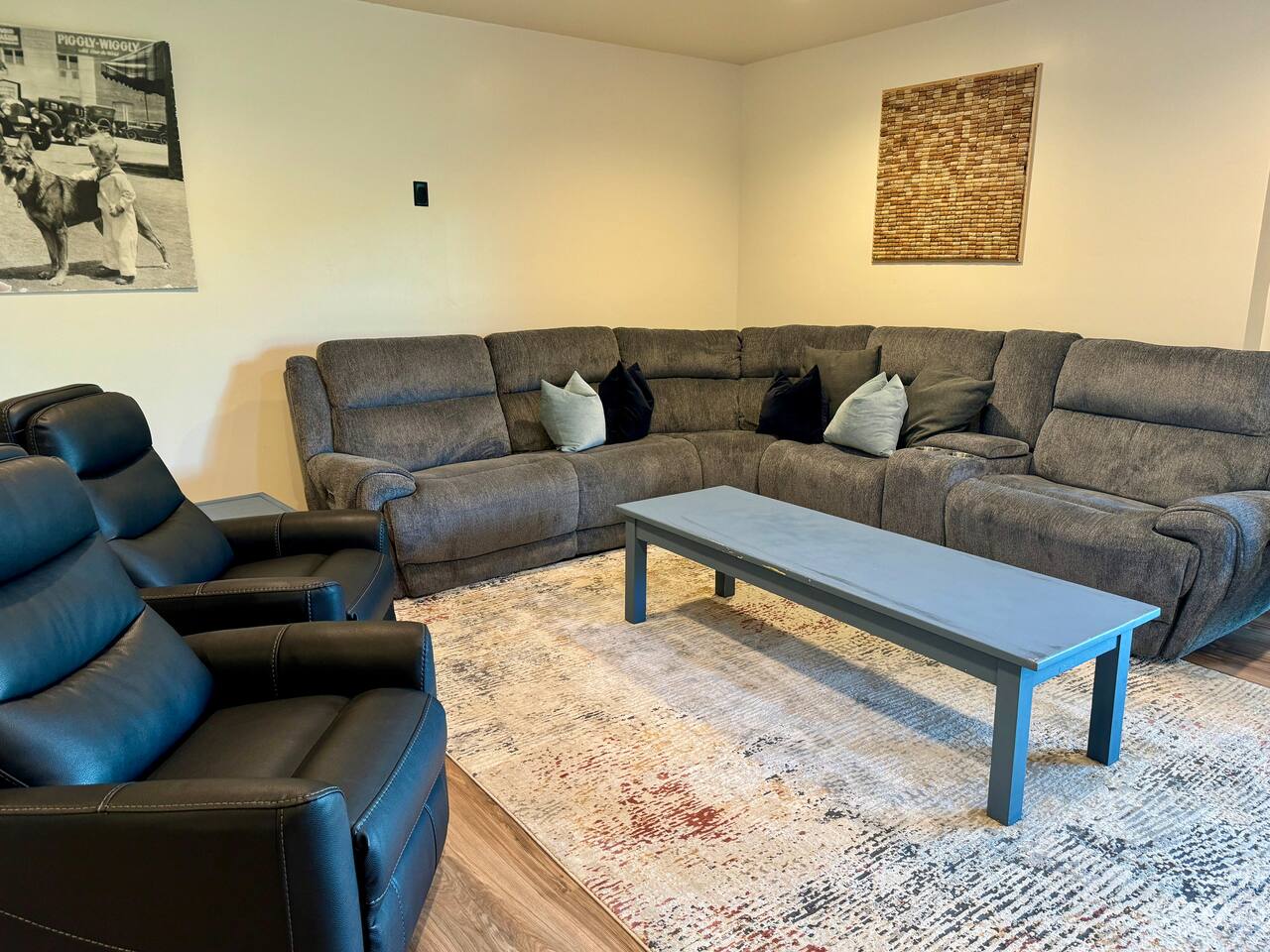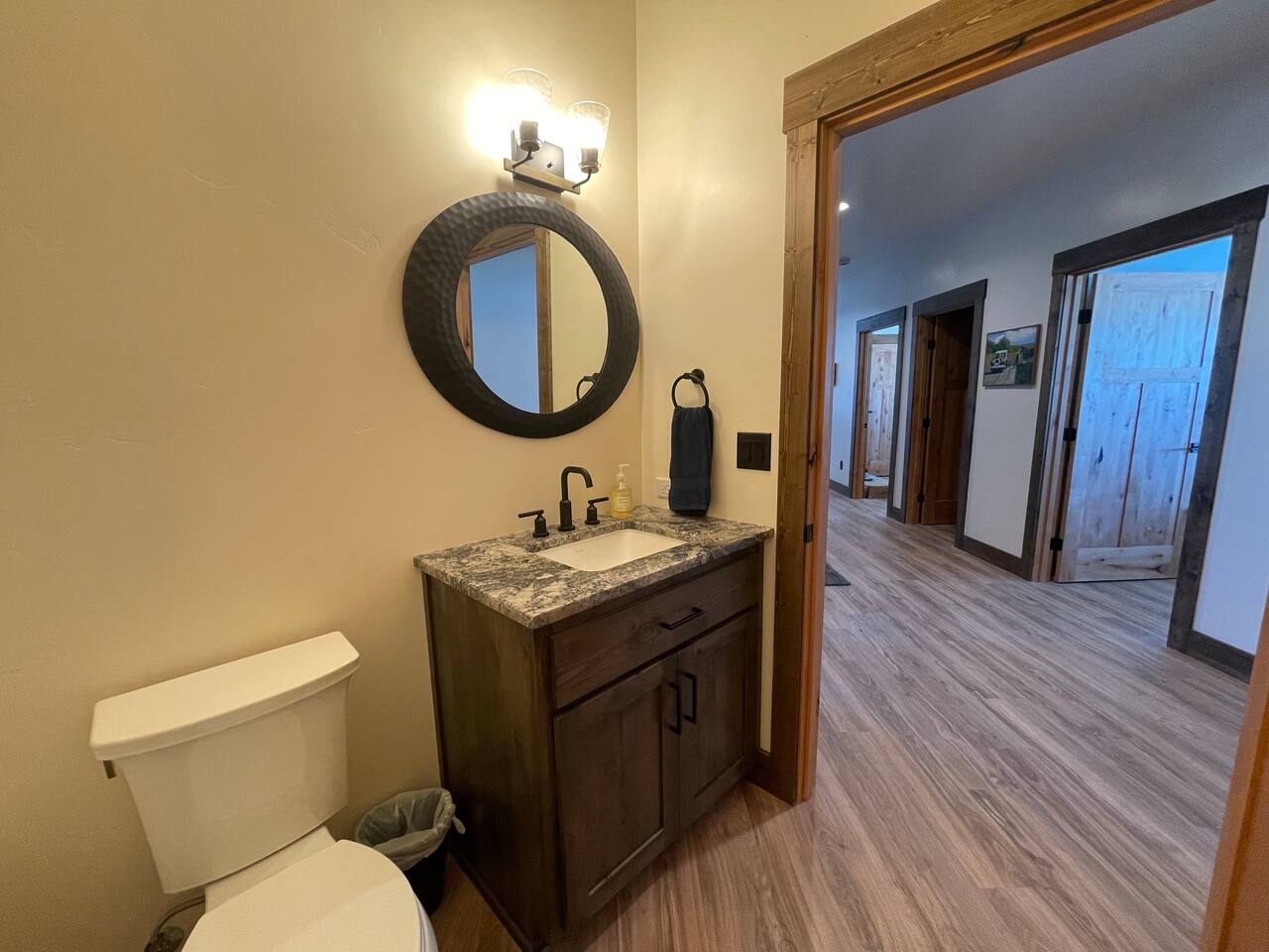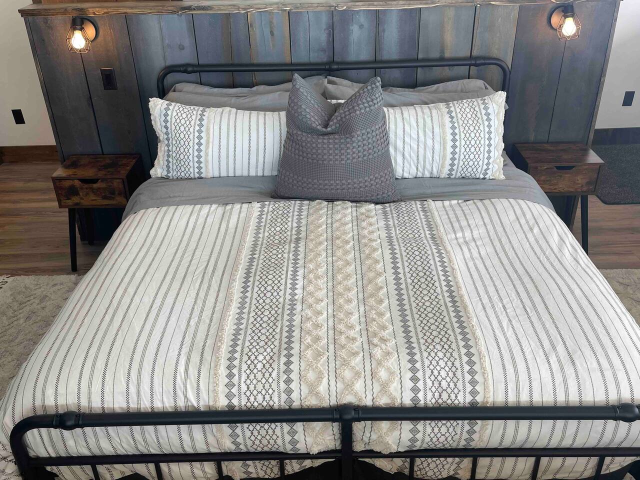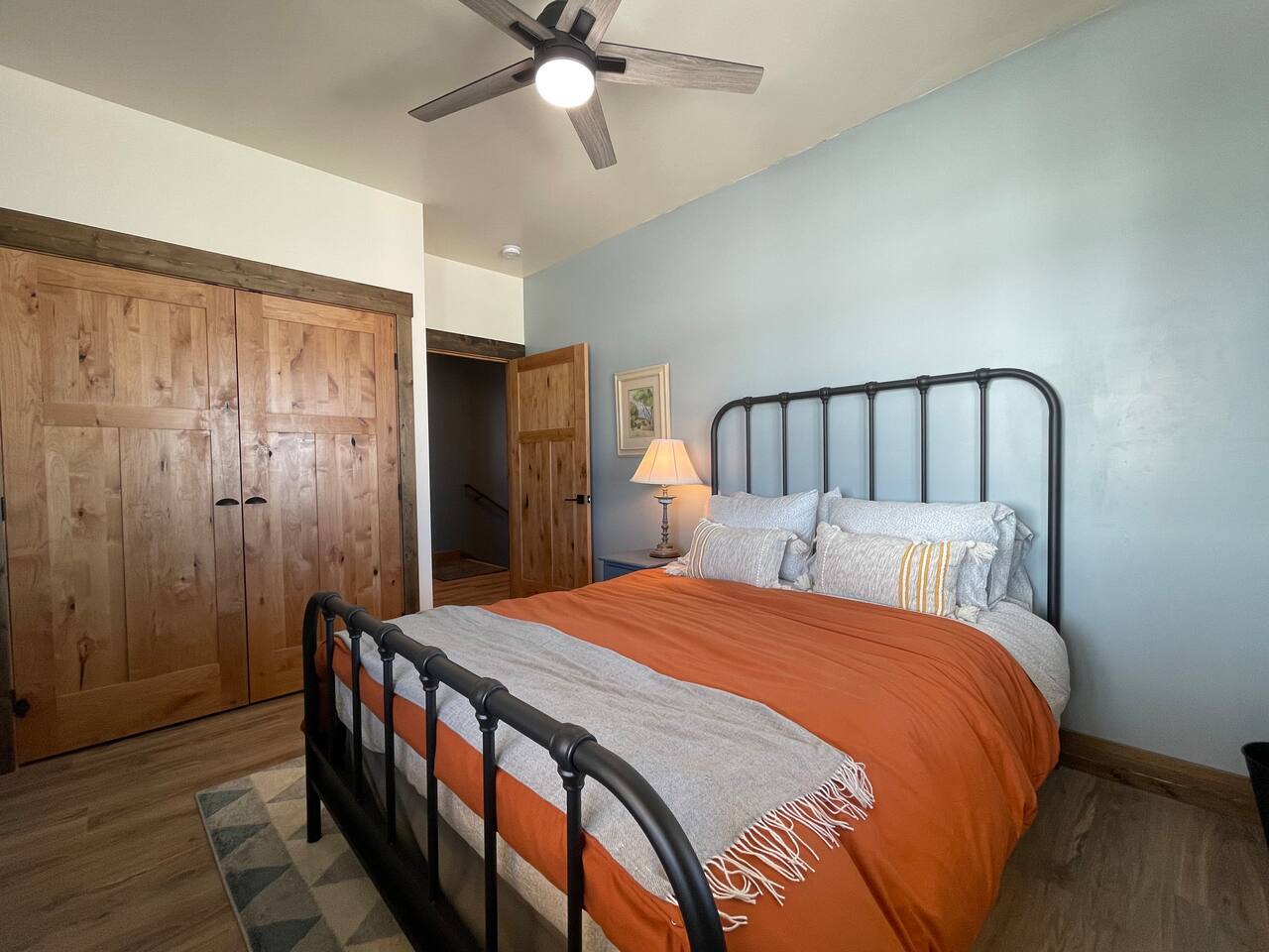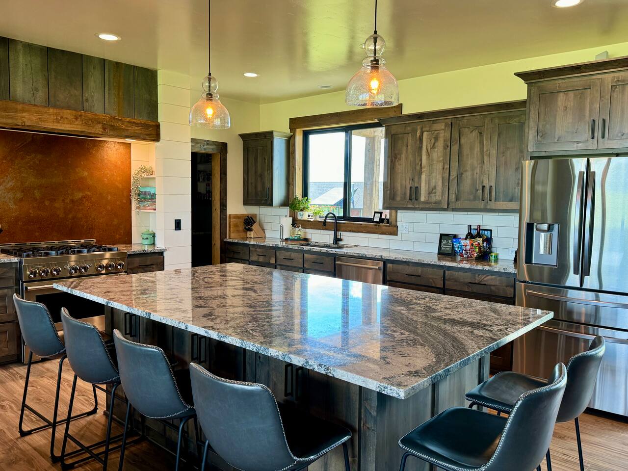 A little bit about the space: Newly built in 2023 and located on 3.2 acres on what is known as “the quiet side of the Tetons”. There are other homes in sight, but the properties are spread out, so you’ll be able to enjoy privacy and relaxation. On the main level, you’ll find a spacious kitchen with granite countertops, stainless steel appliances, six burner propane range, wine fridge and comfortable bar top seating for 6. Fully stocked with pots, pans, dinnerware and everything you need to prepare a gourmet home cooked meal. There are 2 dining tables with enough seating for the whole crew. The large primary bedroom is custom built around the main attraction – the view! There is a king bed distinctively positioned to enjoy a picture perfect view of the sunrise over the Tetons, an attached bathroom with double sinks and a beautifully designed steam shower. Along with 2 more private bedrooms, each with queen beds, the main floor offers a spacious living, a second bathroom and a large laundry room. Downstairs in the fully finished walk-out basement there are 2 private bedrooms; one with a queen bed and one with 2 singles (day bed style). There is also a section of the living room that is curtained off with 2 sets of bunk beds. The large open living room has another large TV, game table, ping pong table and comfy seating to hang out and relax. All with plenty of natural light and of course, a view of the Tetons! A few unique and interesting features of the home: The majority of the artwork is all original hand paintings from the owner’s grandmother. The canvases were found in an attic and were able to be brought back to life and beautifully displayed to set the tone throughout the home. Many pieces of the furniture are also over 150 years old. While there are vintage pieces, there is no lack of luxury and top of the line features to make your stay relaxing and enjoyable with all the comforts of home. Although Teton Valley is best known for adventure and relaxation its nice to have modern connivences nearby. Grocery stores, restaurants, coffee shops, ski shops, bike shops, fly fishing outfitters, gas stations, liquor stores and pubs are plentiful. This is a great place to stay while you visit the National Parks with convenient access to multiple entrances. -Grand Teton National Park: 1 hour drive -Yellowstone National Park West Entrance: 1.75 hour drive -Yellowstone National Park South Entrance: 2.5 hour drive -Jackson Hole, WY - 1.5 hour drive